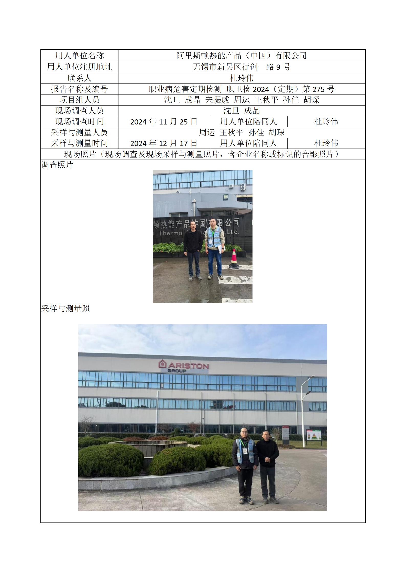 现场采样每日上报(阿里斯顿热能产品(中国)有限公司)