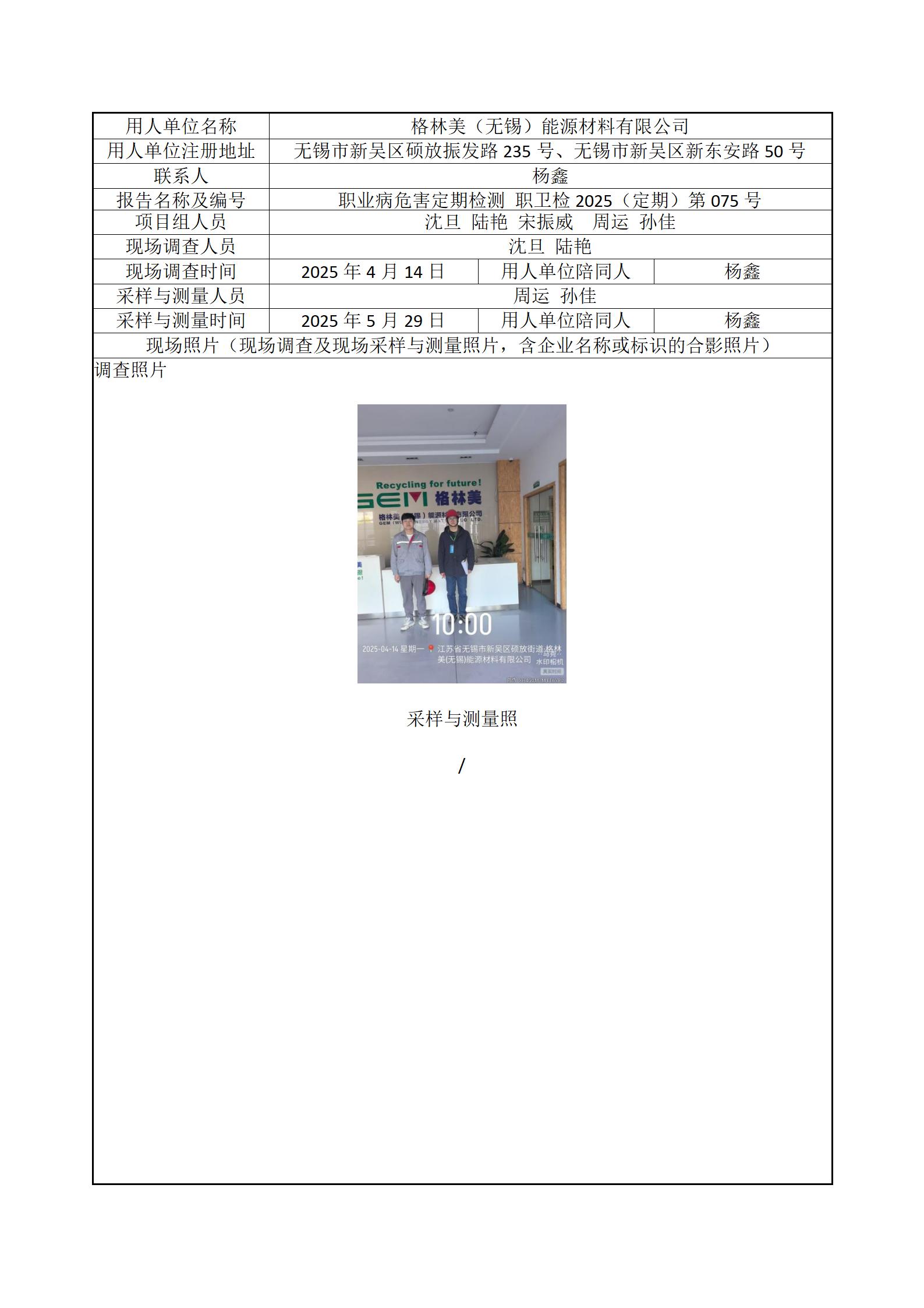 现场采样每日上报(格林美(无锡)能源材料有限公司)