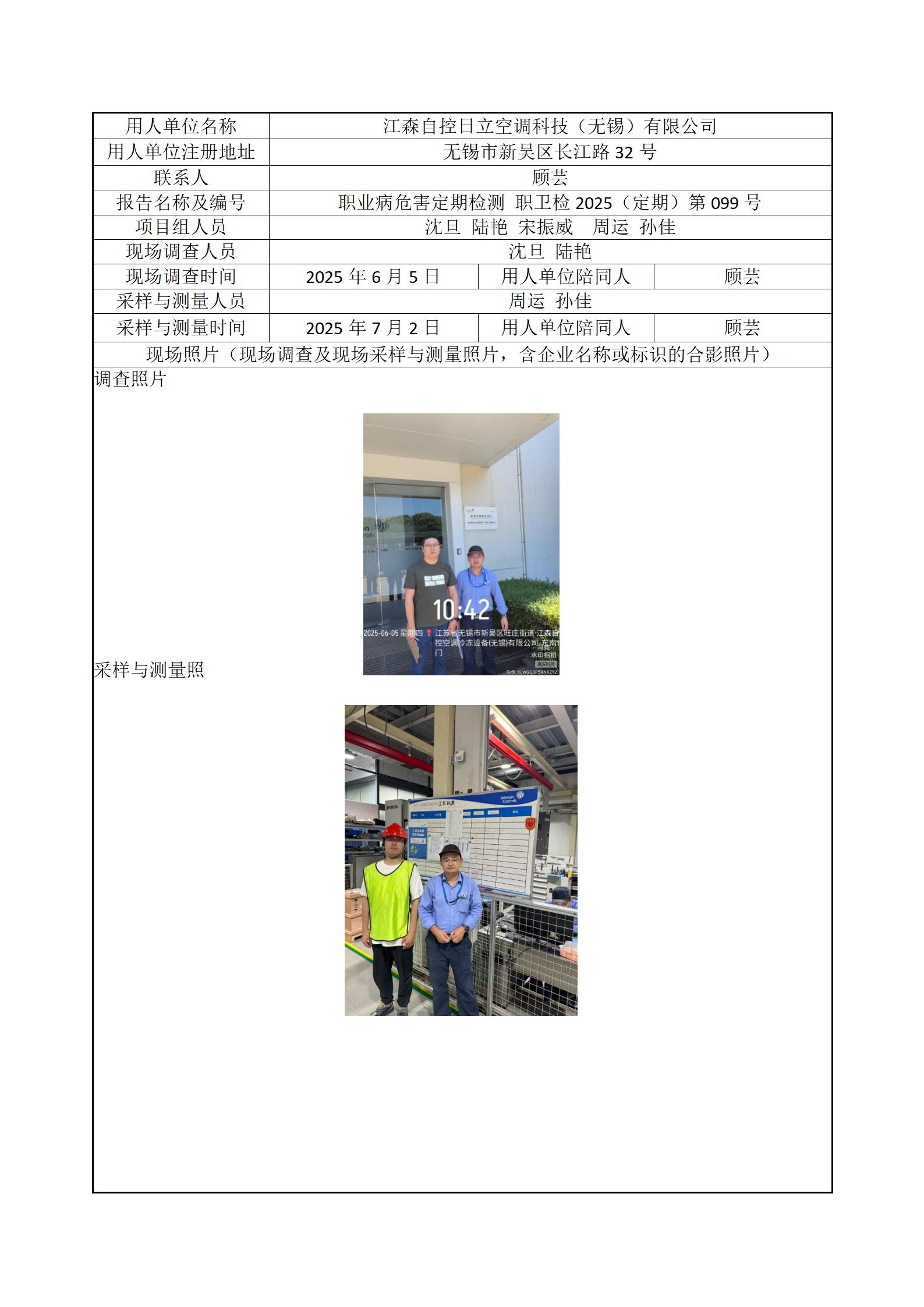 现场采样每日上报(江森自控日立空调科技(无锡)有限公司)