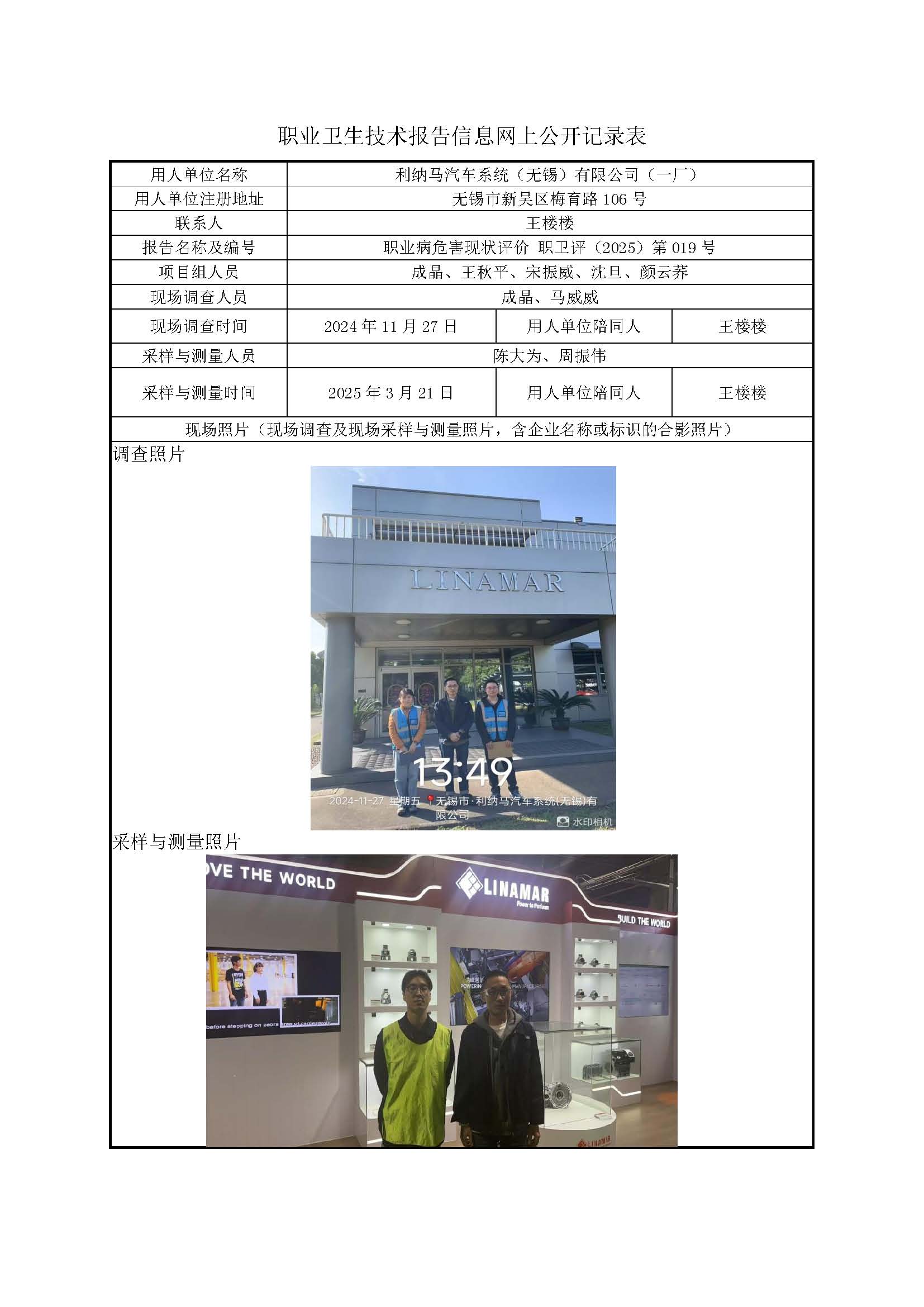 现场采样每日上报(利纳马汽车系统(无锡)有限公司(一厂))