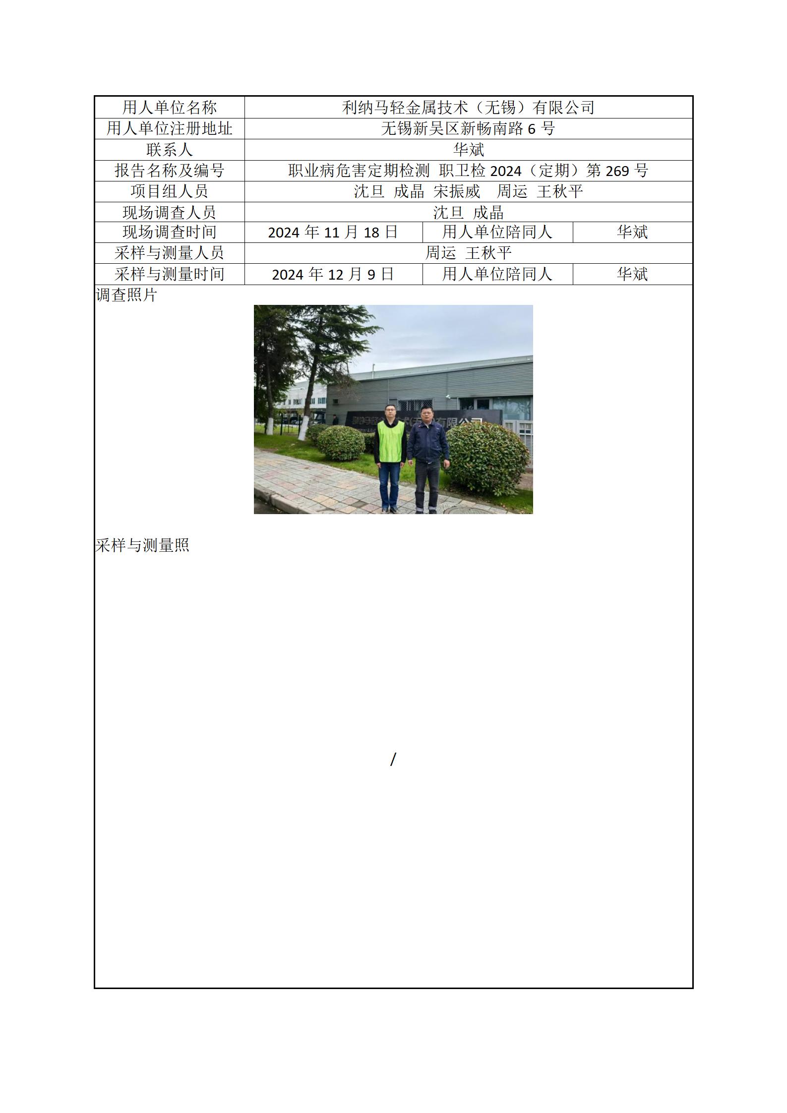 现场采样每日上报(利纳马轻金属技术(无锡)有限公司)