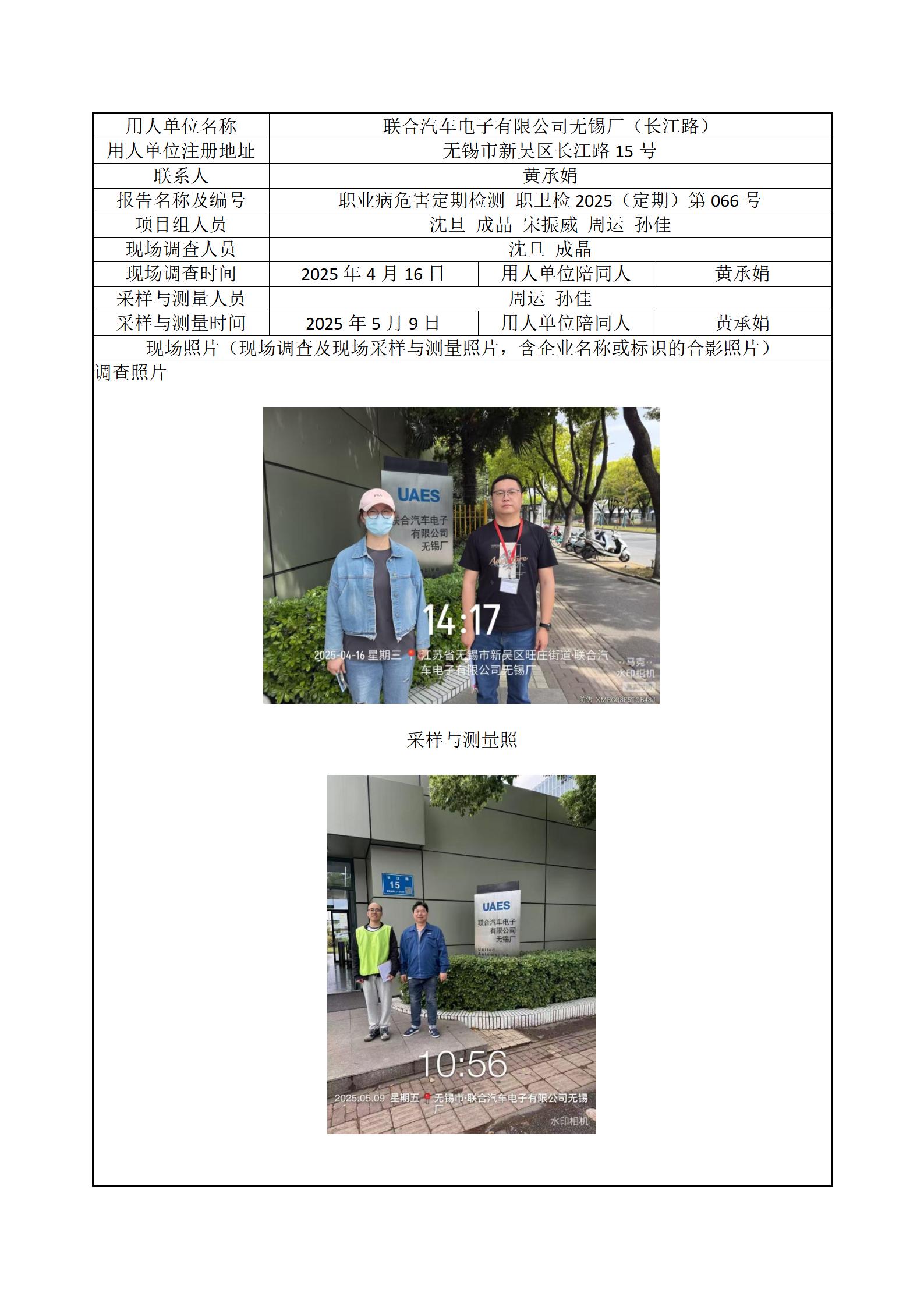 现场采样每日上报(联合汽车电子有限公司无锡厂(长江路))