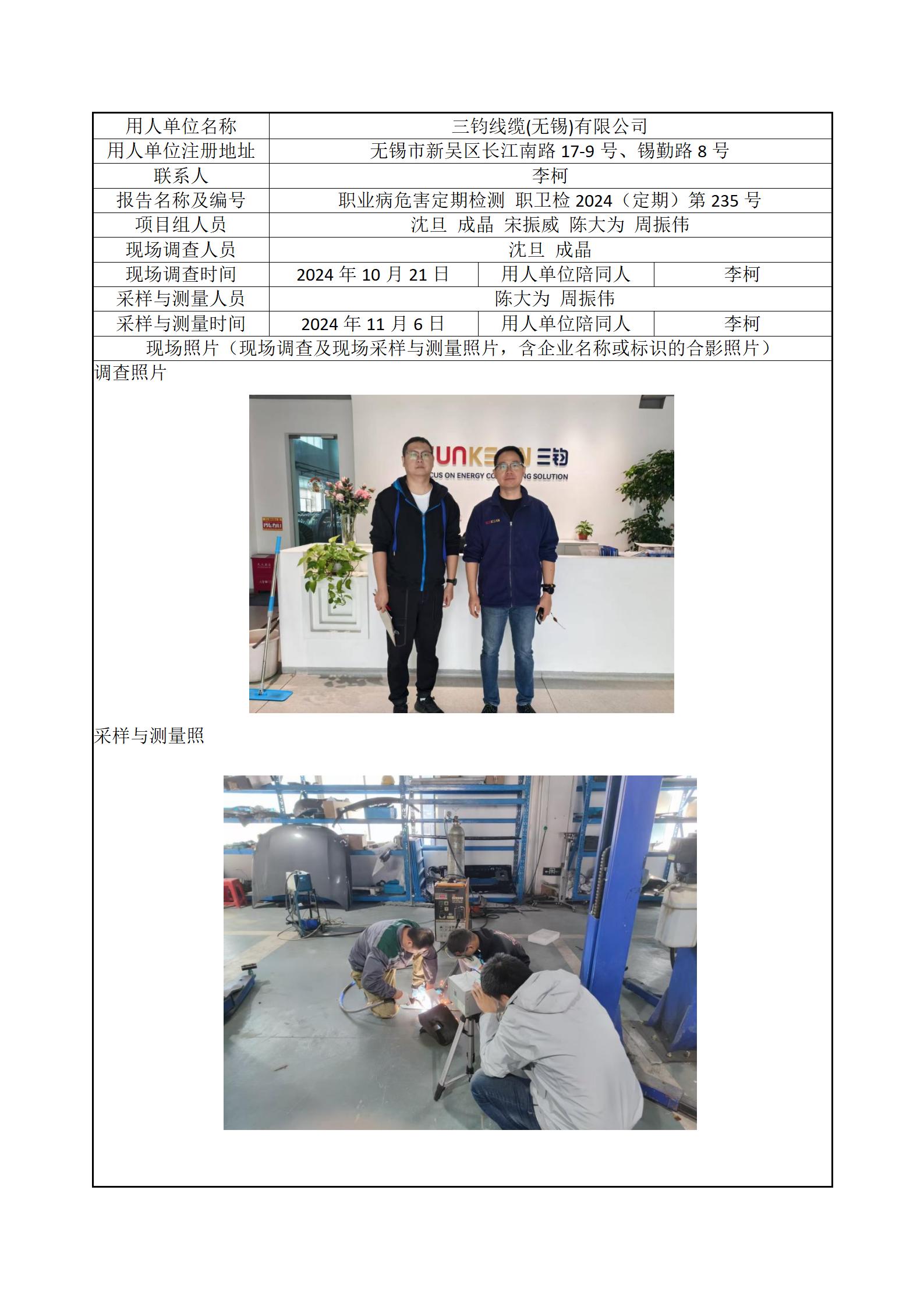 现场采样每日上报(三钧线缆(无锡)有限公司)