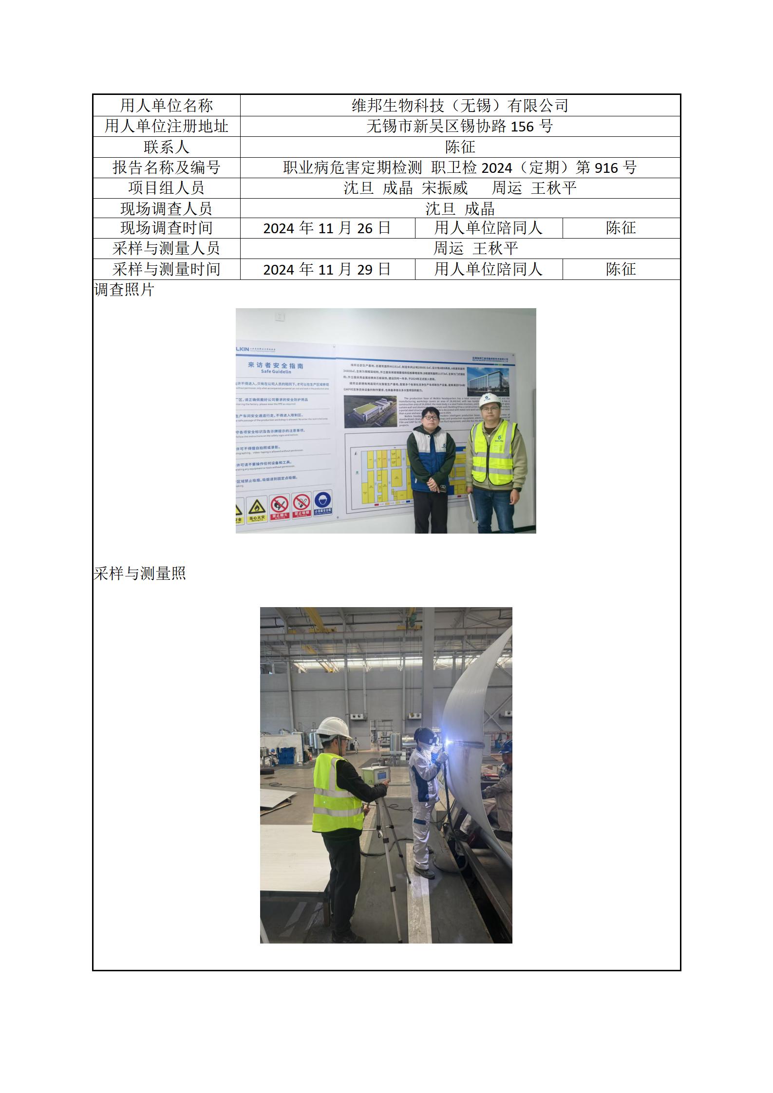 现场采样每日上报(维邦生物科技(无锡)有限公司)