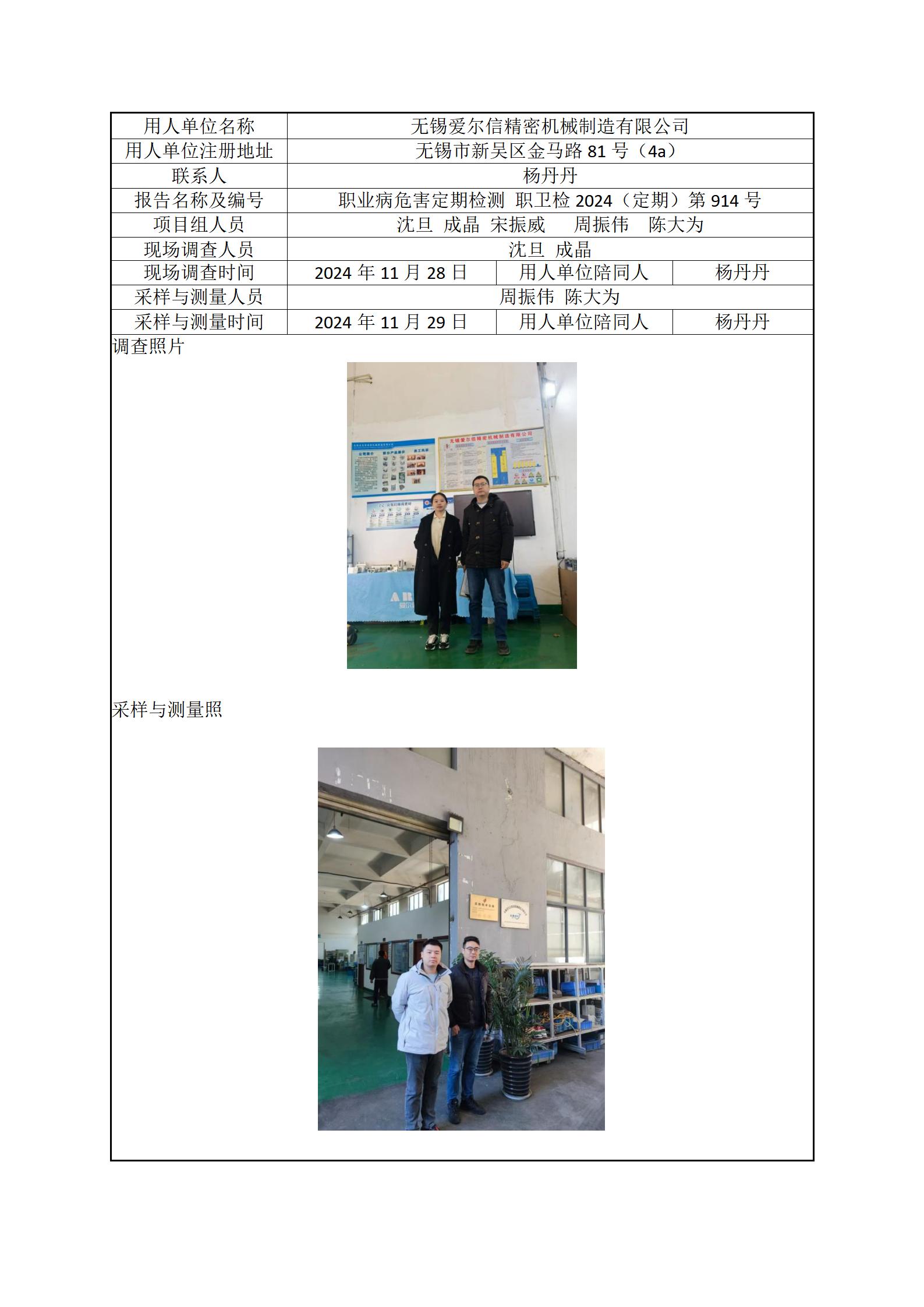 现场采样每日上报(无锡爱尔信精密机械制造有限公司)