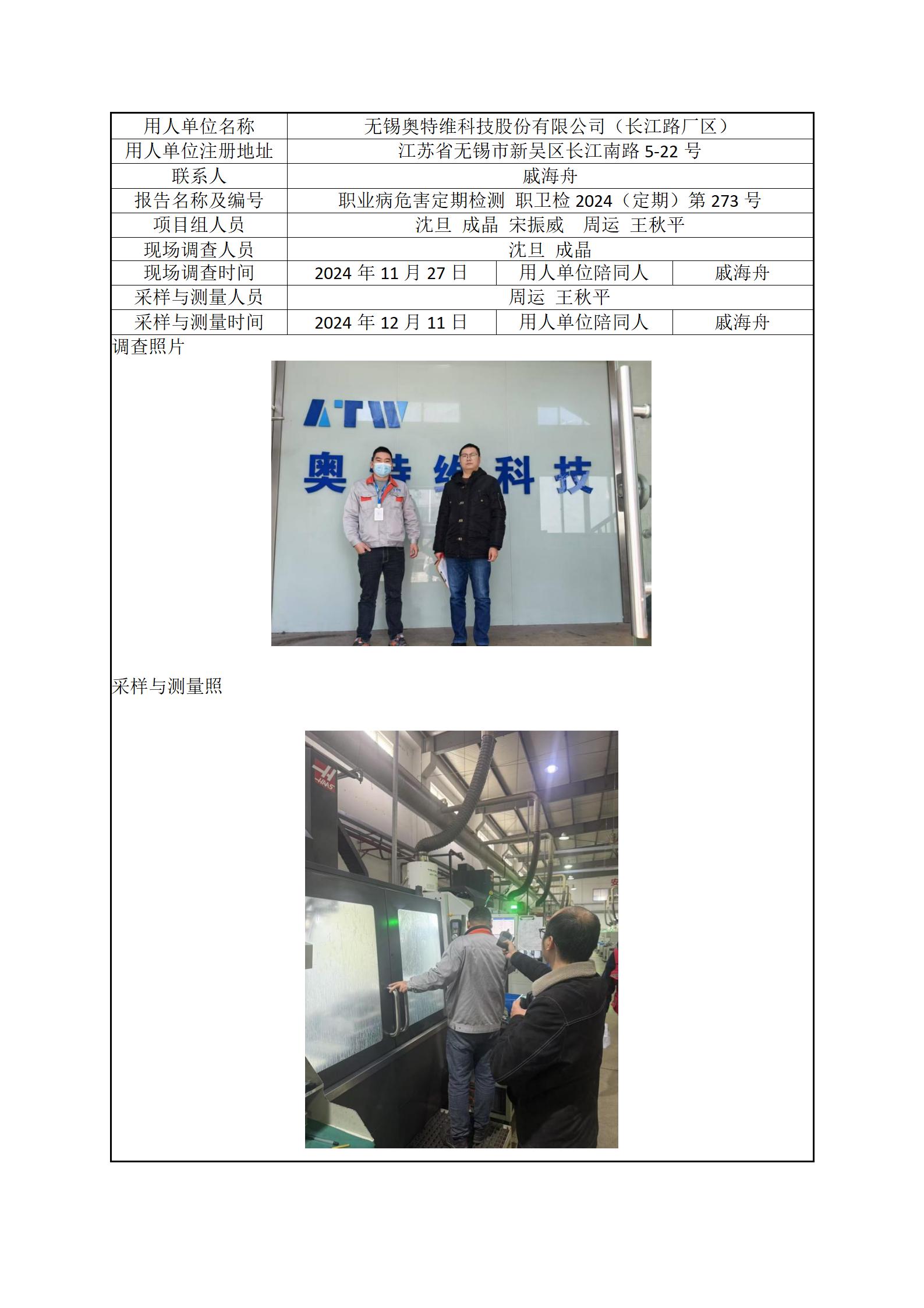 现场采样每日上报(无锡奥特维科技股份有限公司(长江路厂区))