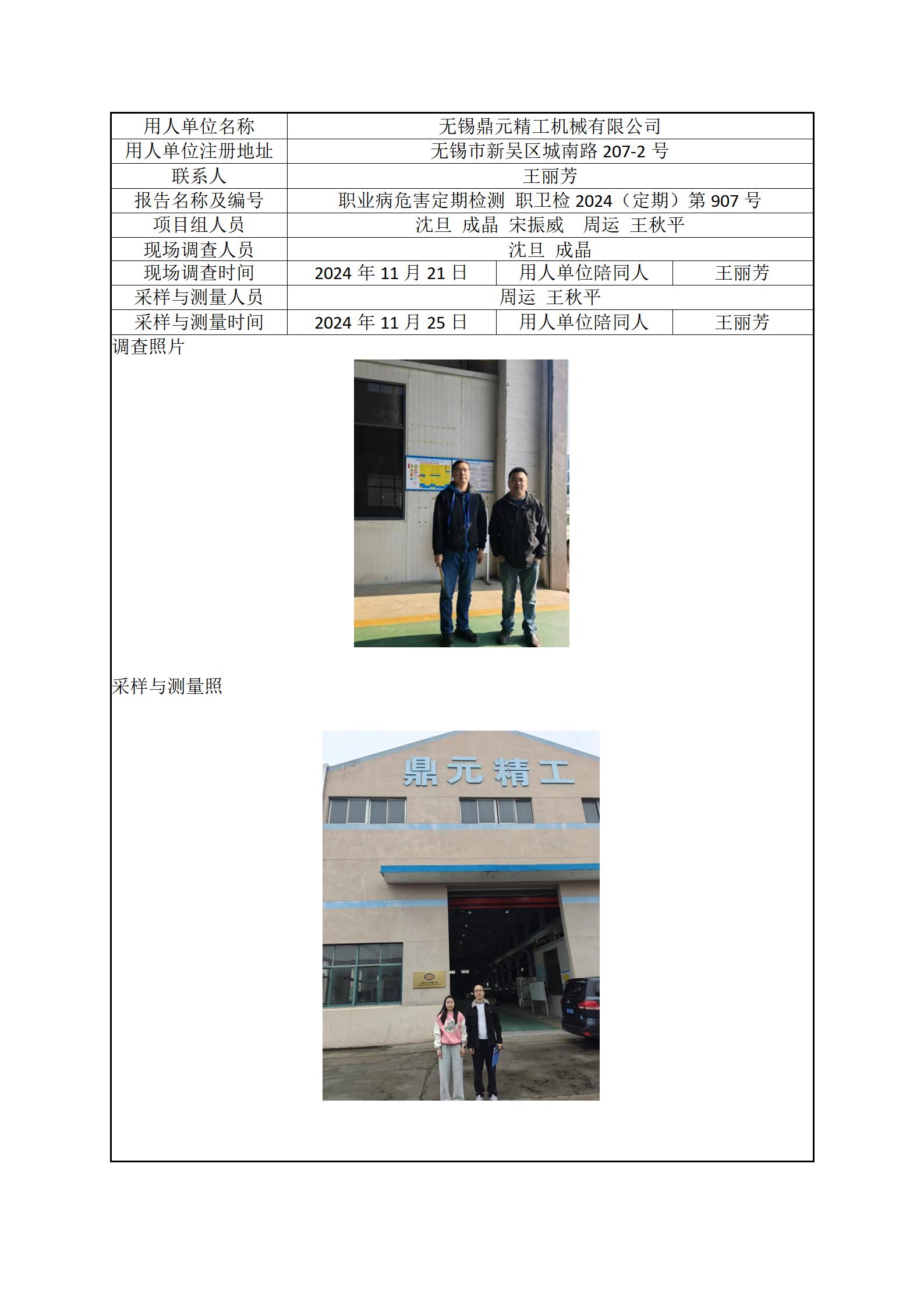 现场采样每日上报(无锡鼎元精工机械有限公司)