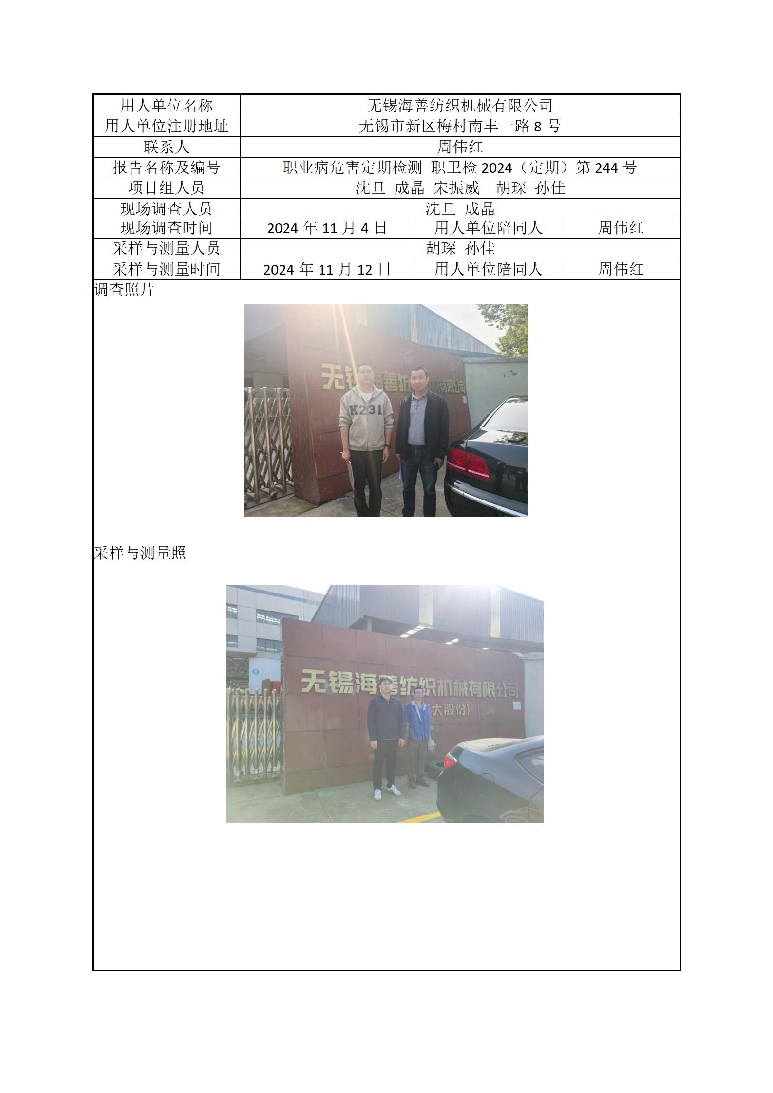 现场采样每日上报(无锡海善纺织机械有限公司)