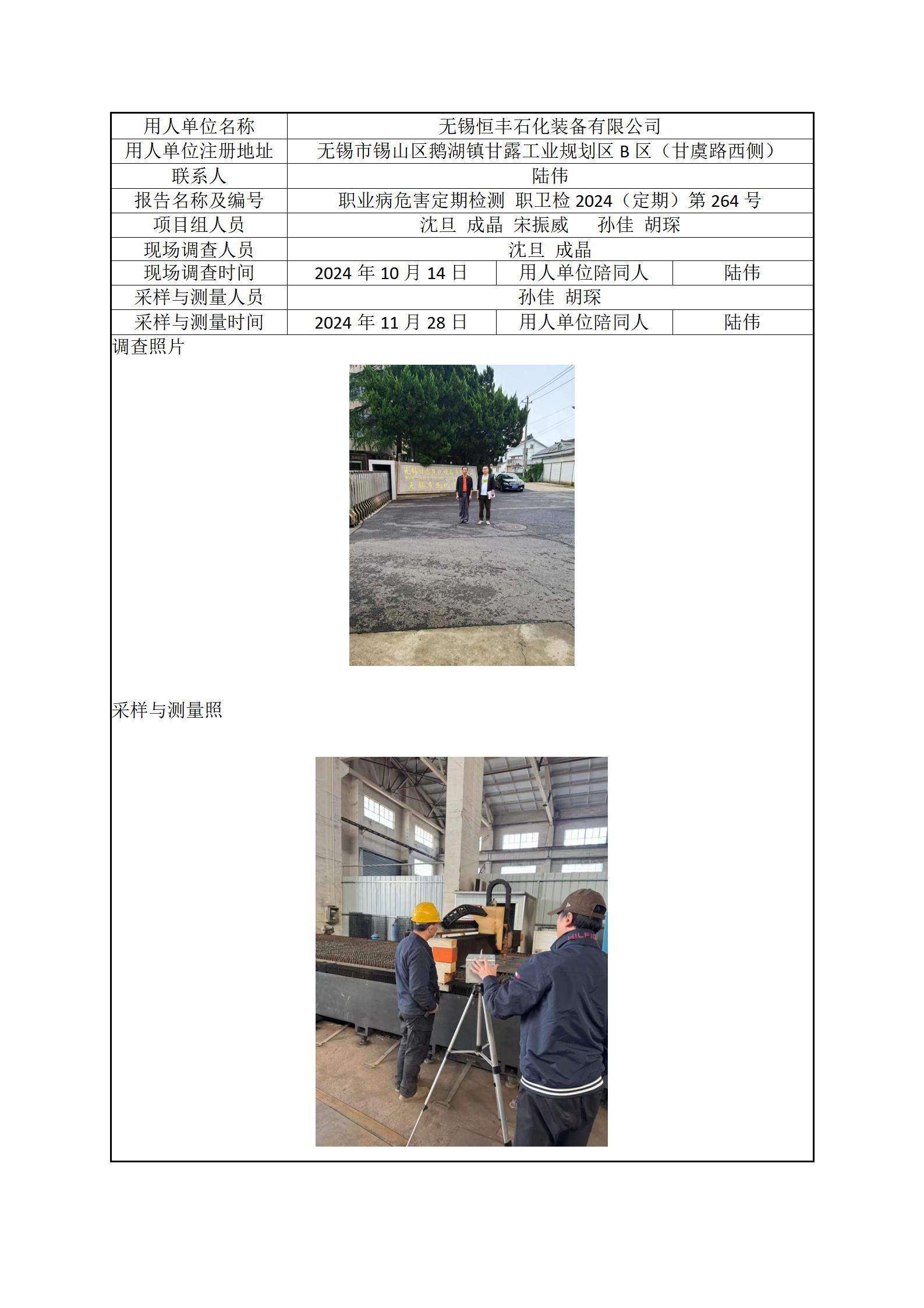 现场采样每日上报(无锡恒丰石化装备有限公司)
