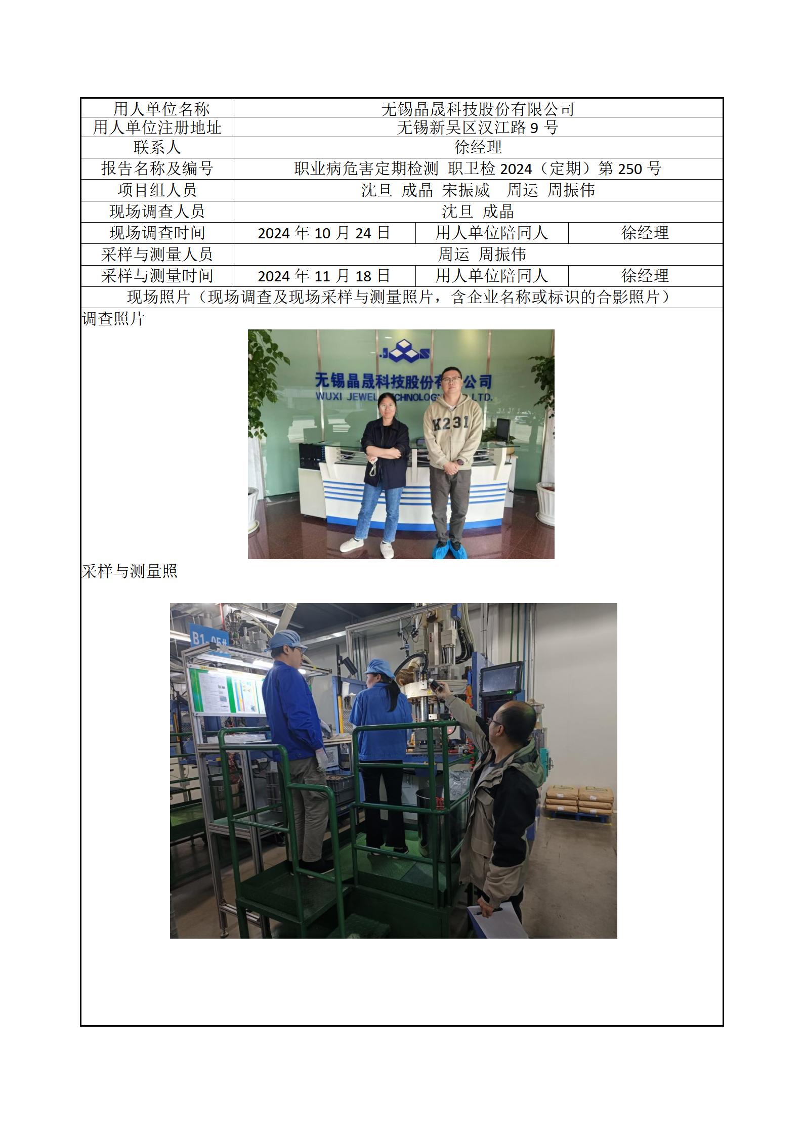 现场采样每日上报(无锡晶晟科技股份有限公司)