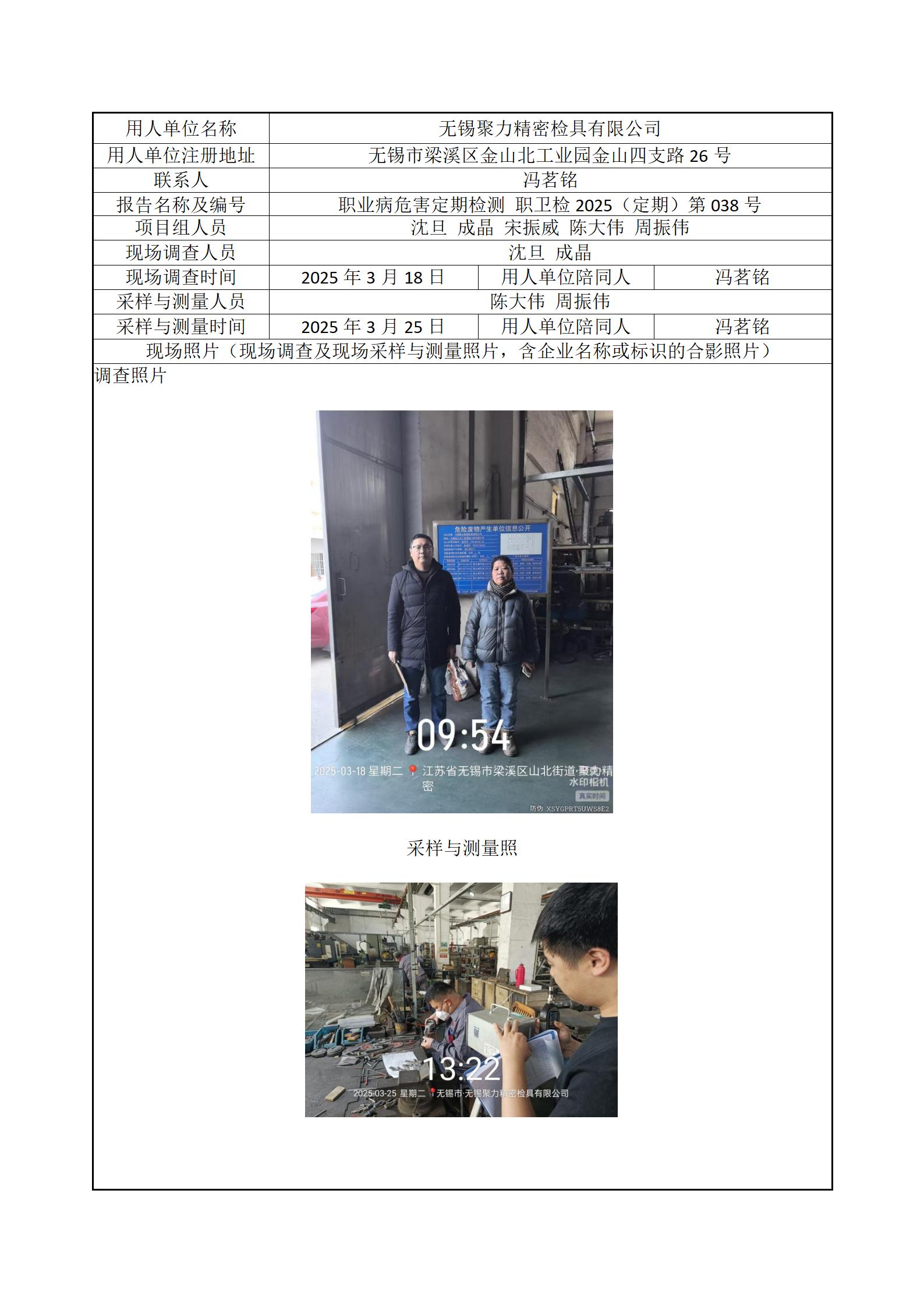 现场采样每日上报(无锡聚力精密检具有限公司)