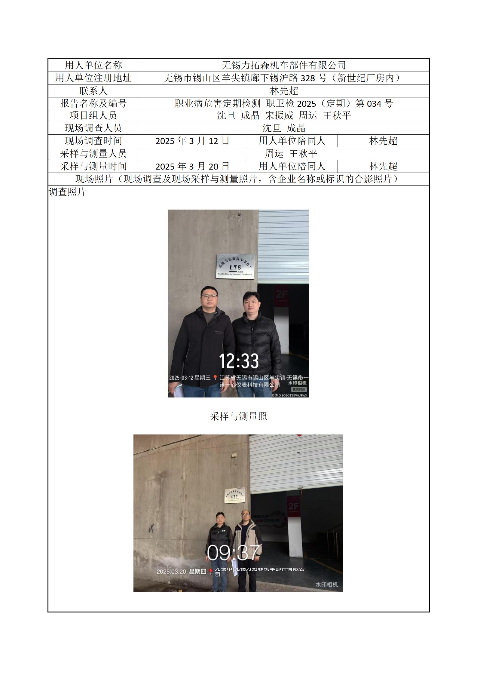 现场采样每日上报(无锡力拓森机车部件有限公司)