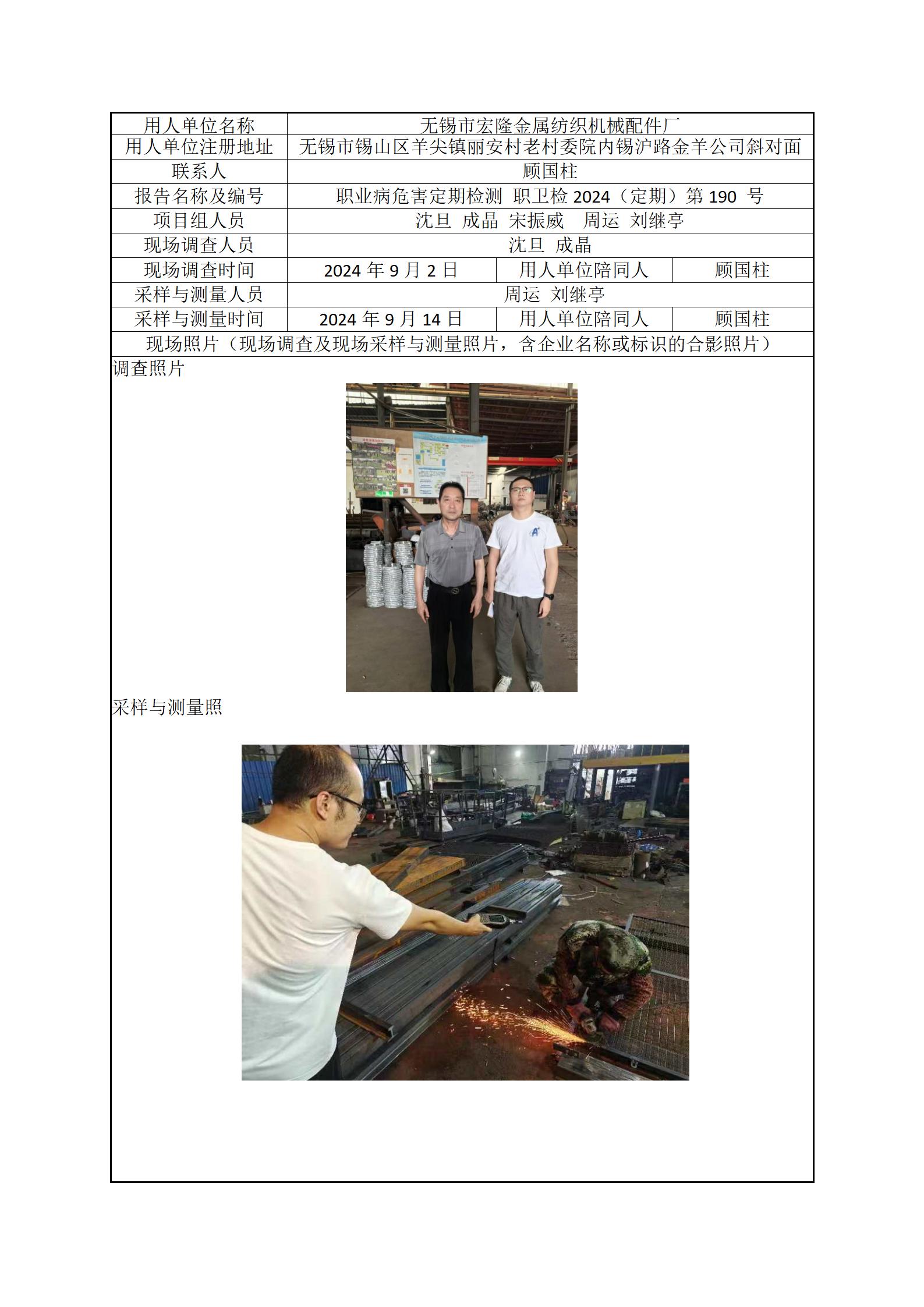 现场采样每日上报(无锡市宏隆金属防治机械配件厂)