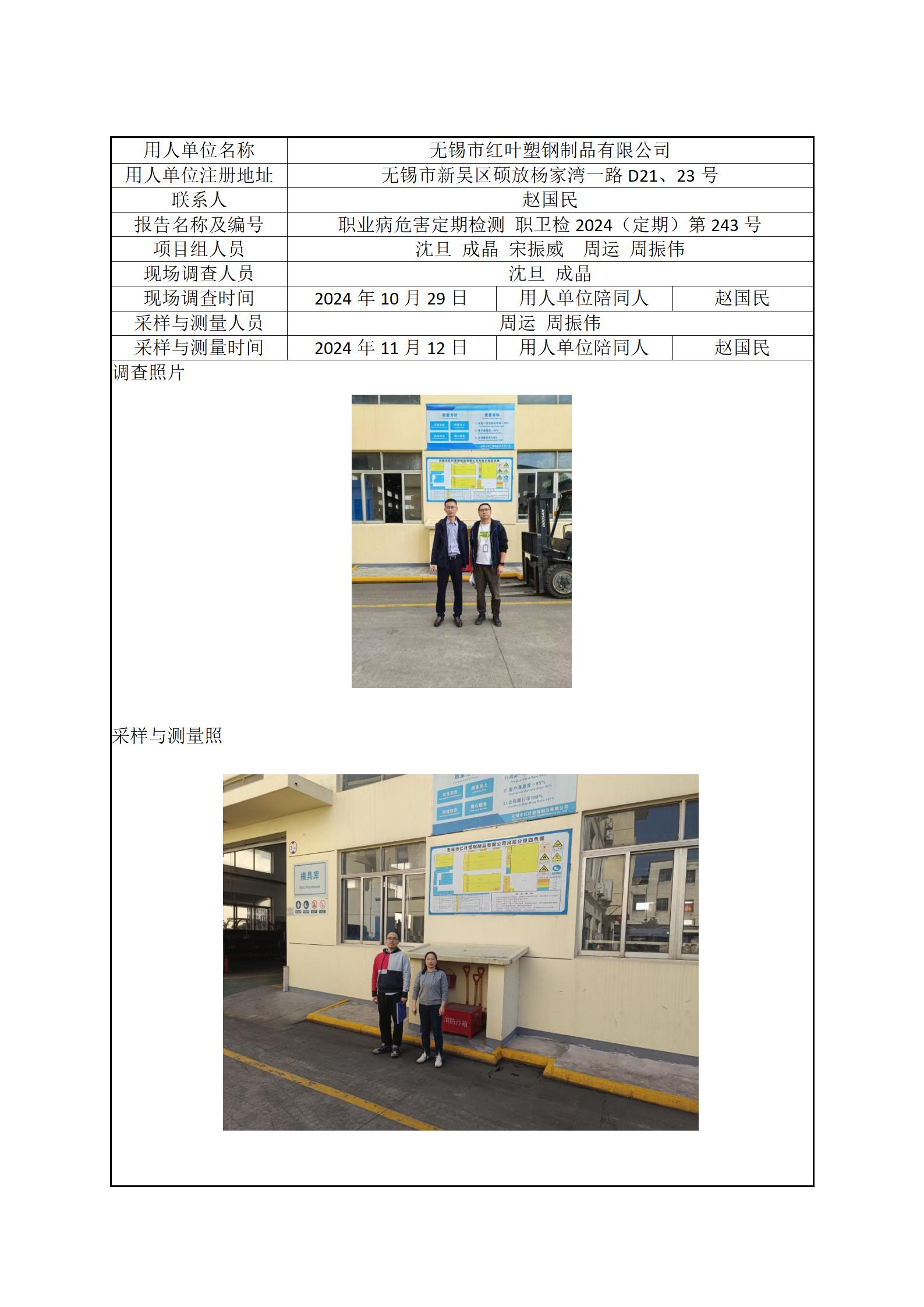 现场采样每日上报(无锡市红叶塑钢制品有限公司)