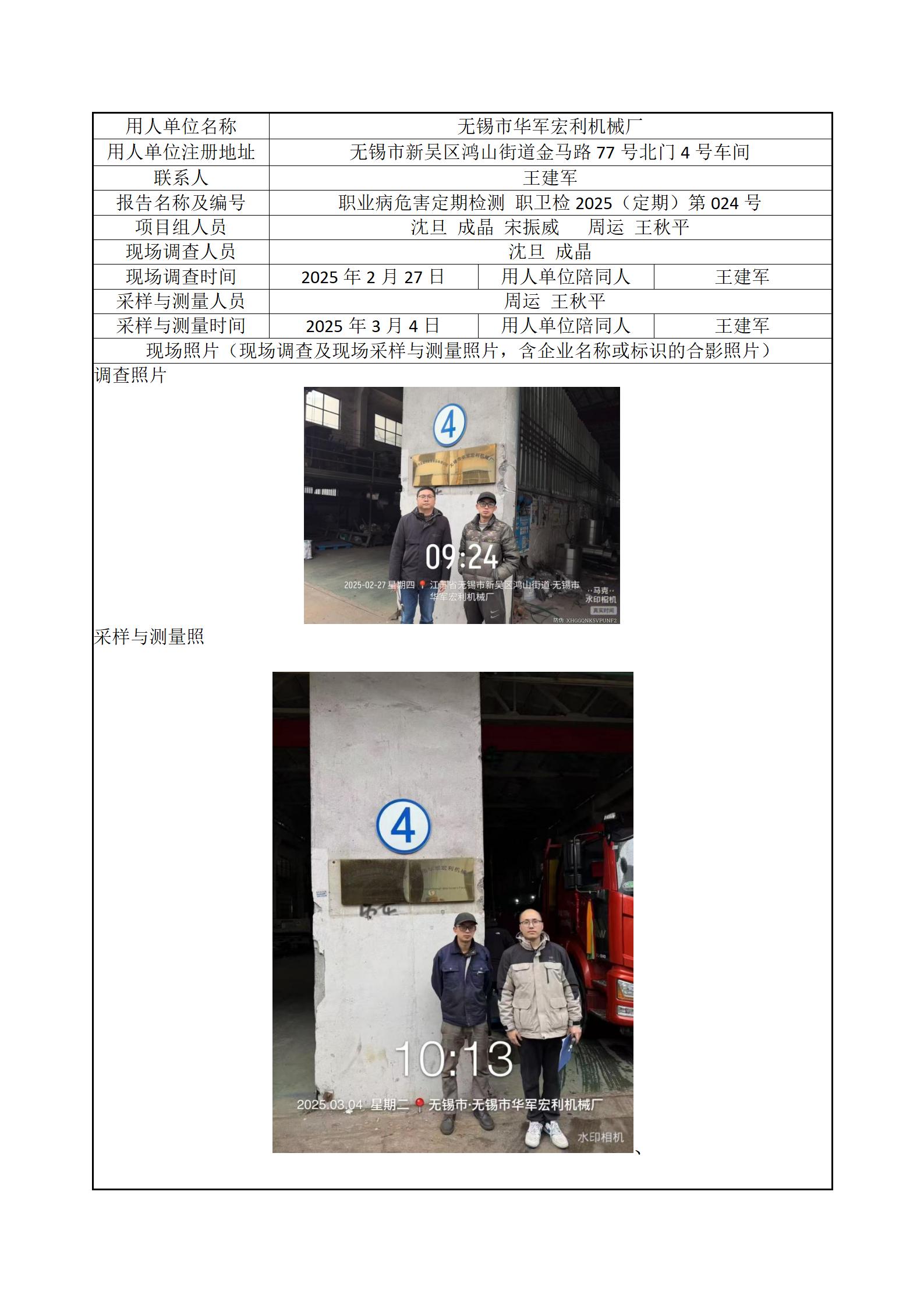 现场采样每日上报(无锡市华军宏利机械厂)