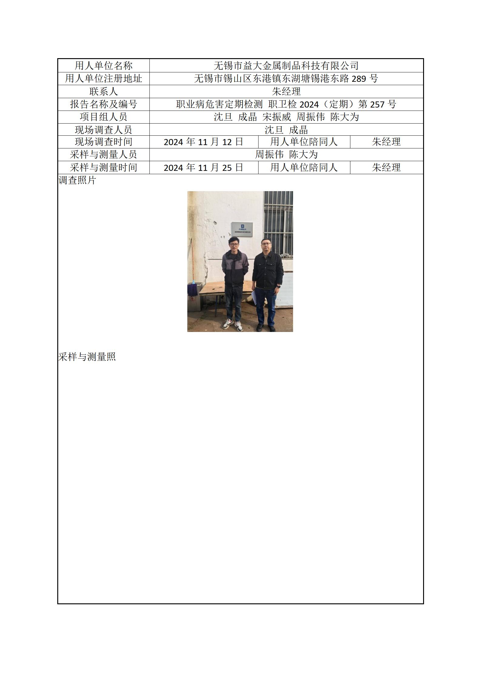 现场采样每日上报(无锡市益大金属制品科技有限公司)
