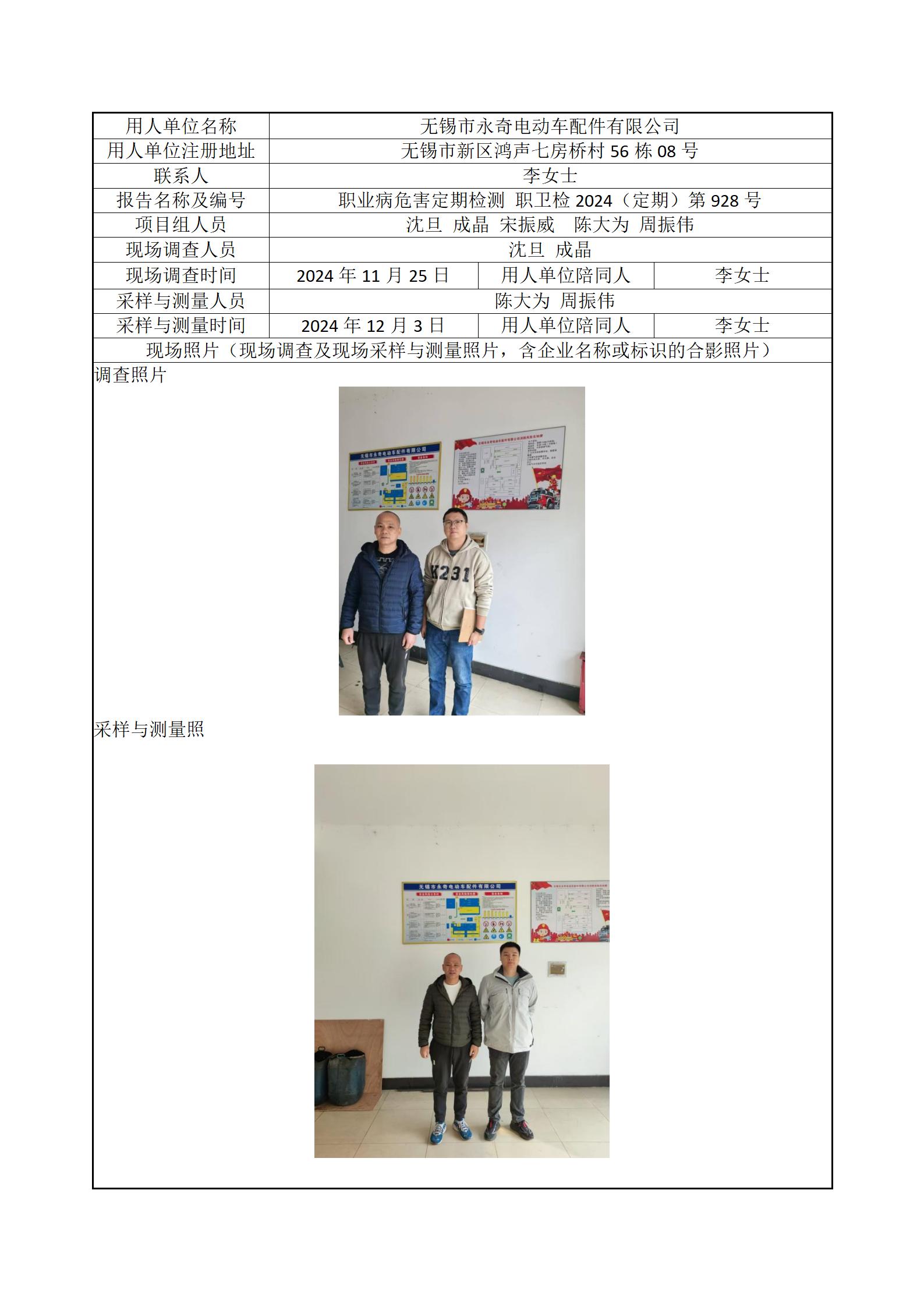 现场采样每日上报(无锡市永奇电动车配件有限公司)