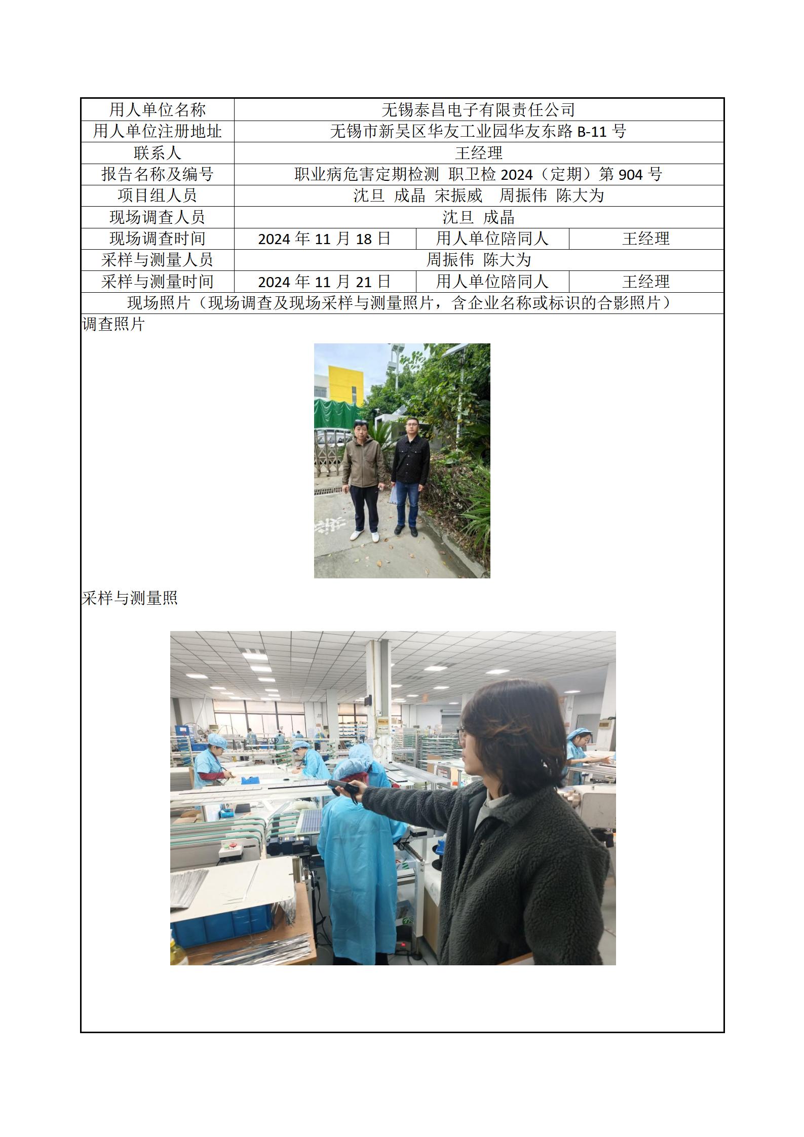 现场采样每日上报(无锡泰昌电子有限责任公司)