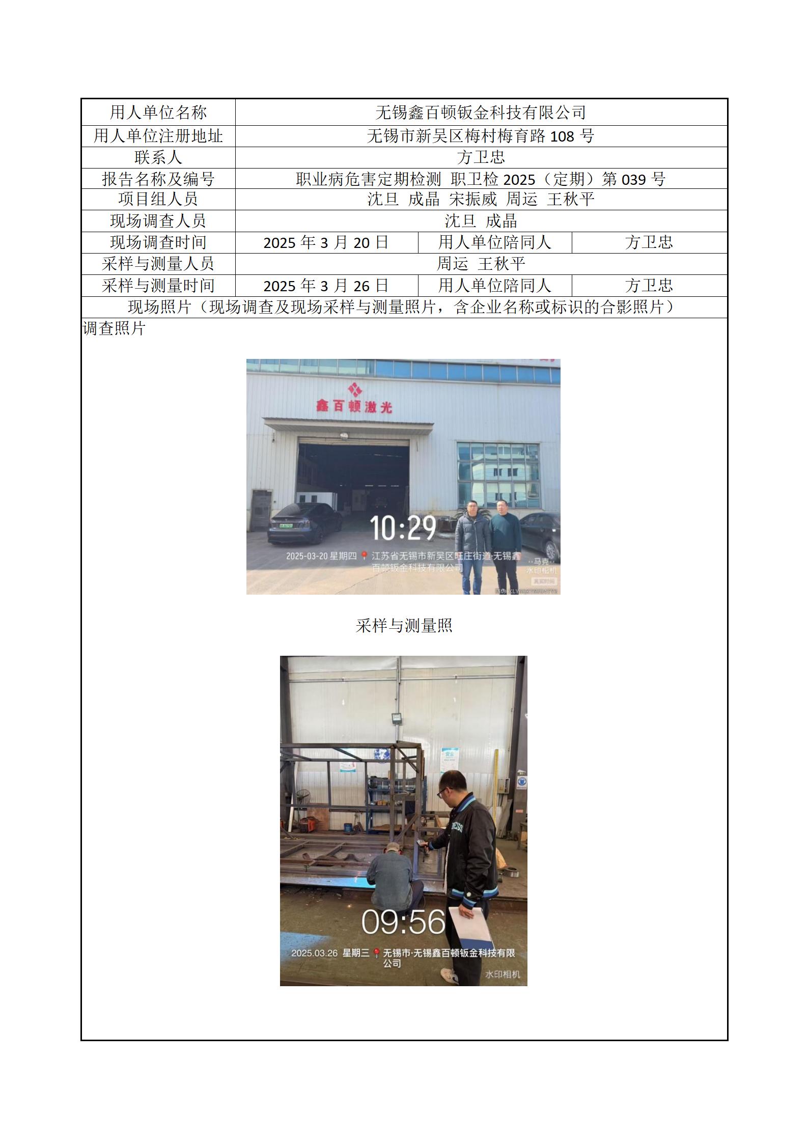 现场采样每日上报(无锡鑫百顿钣金科技有限公司)