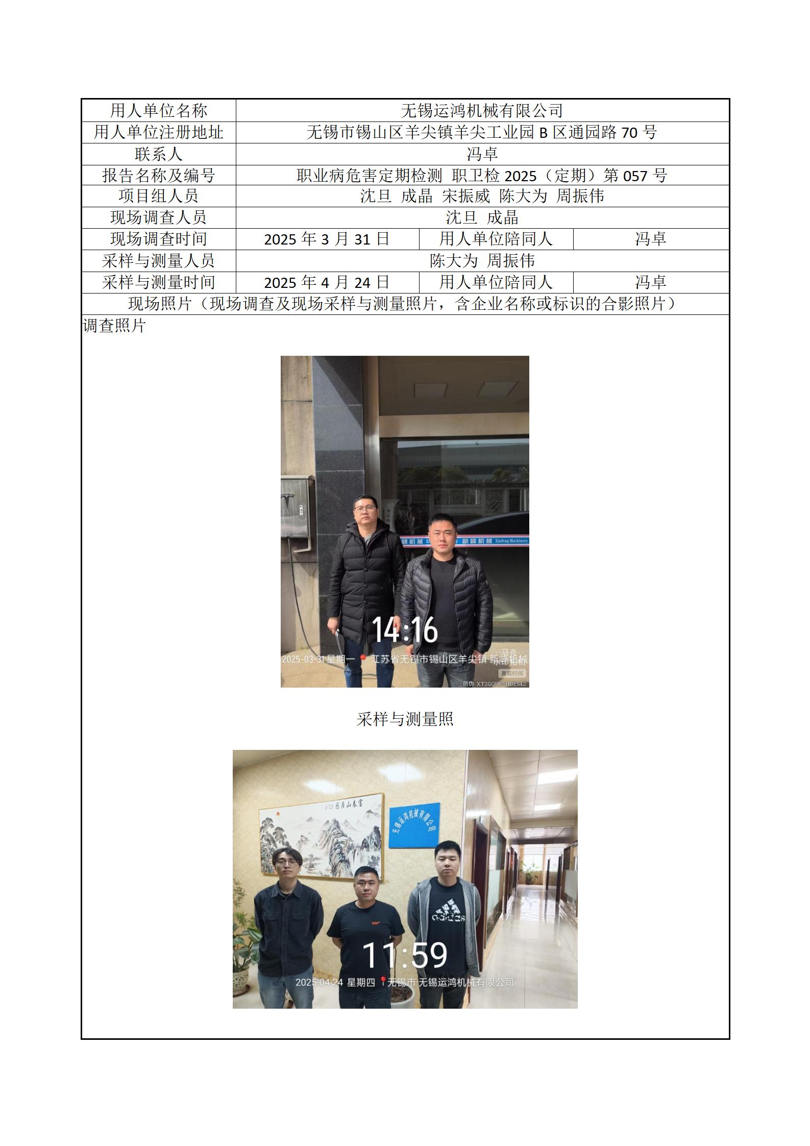 现场采样每日上报(无锡运鸿机械有限公司)
