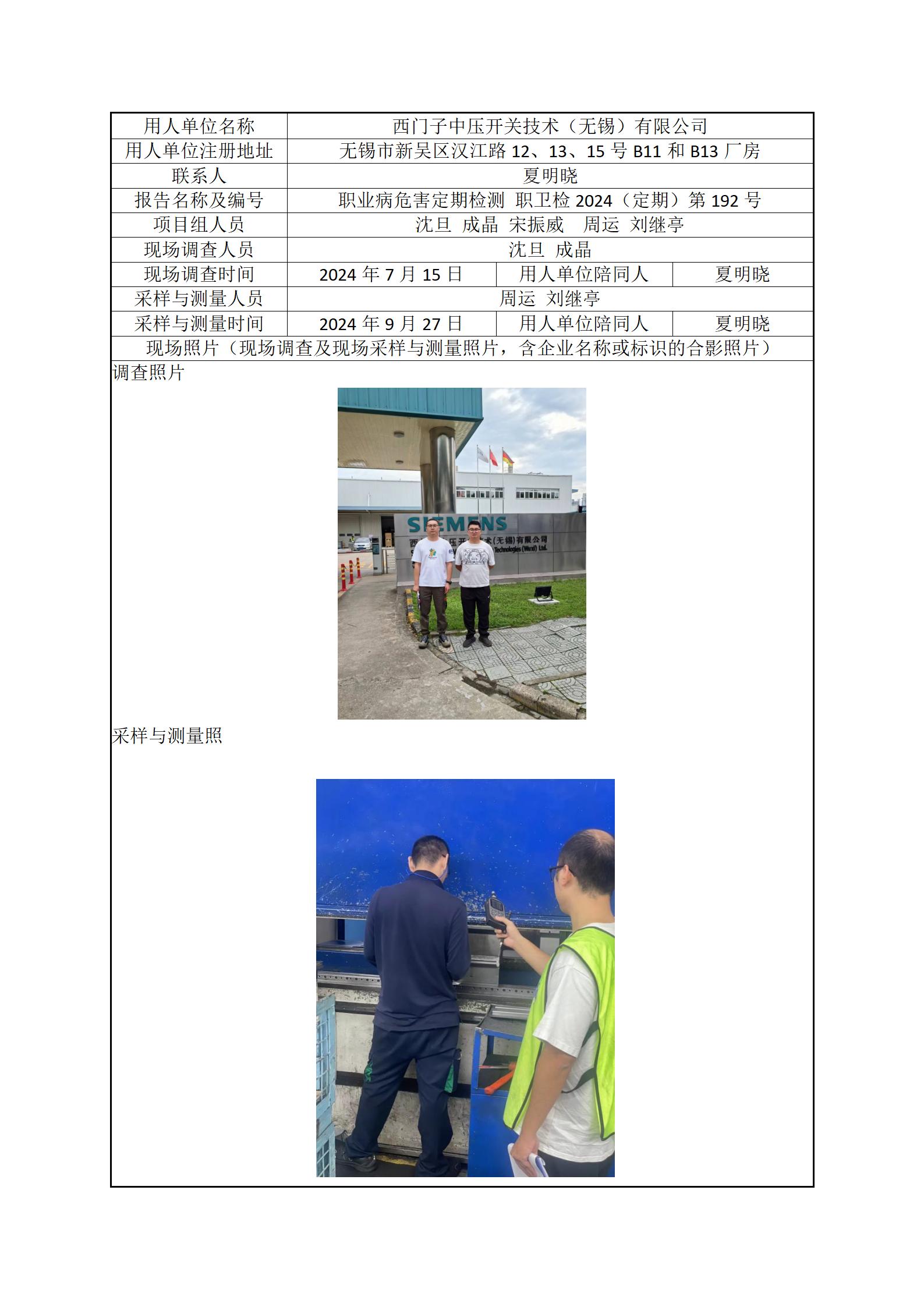 现场采样每日上报(西门子中压开关技术(无锡)有限公司)
