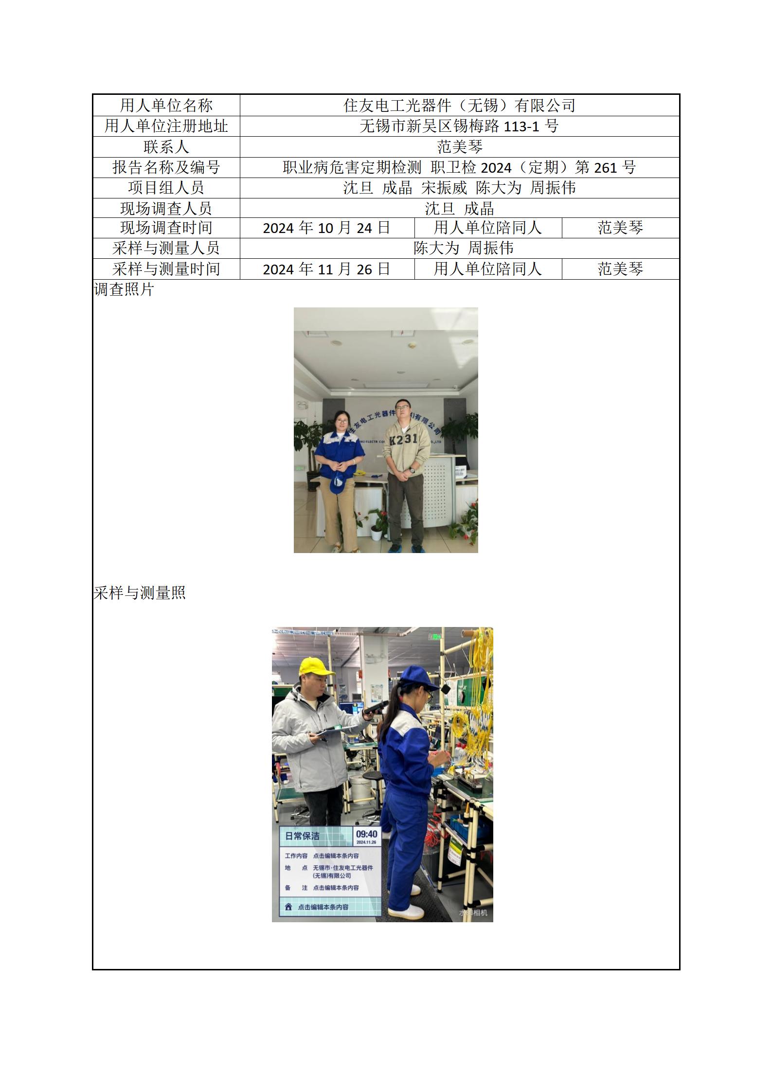 现场采样每日上报(住友电工光器件(无锡)有限公司)