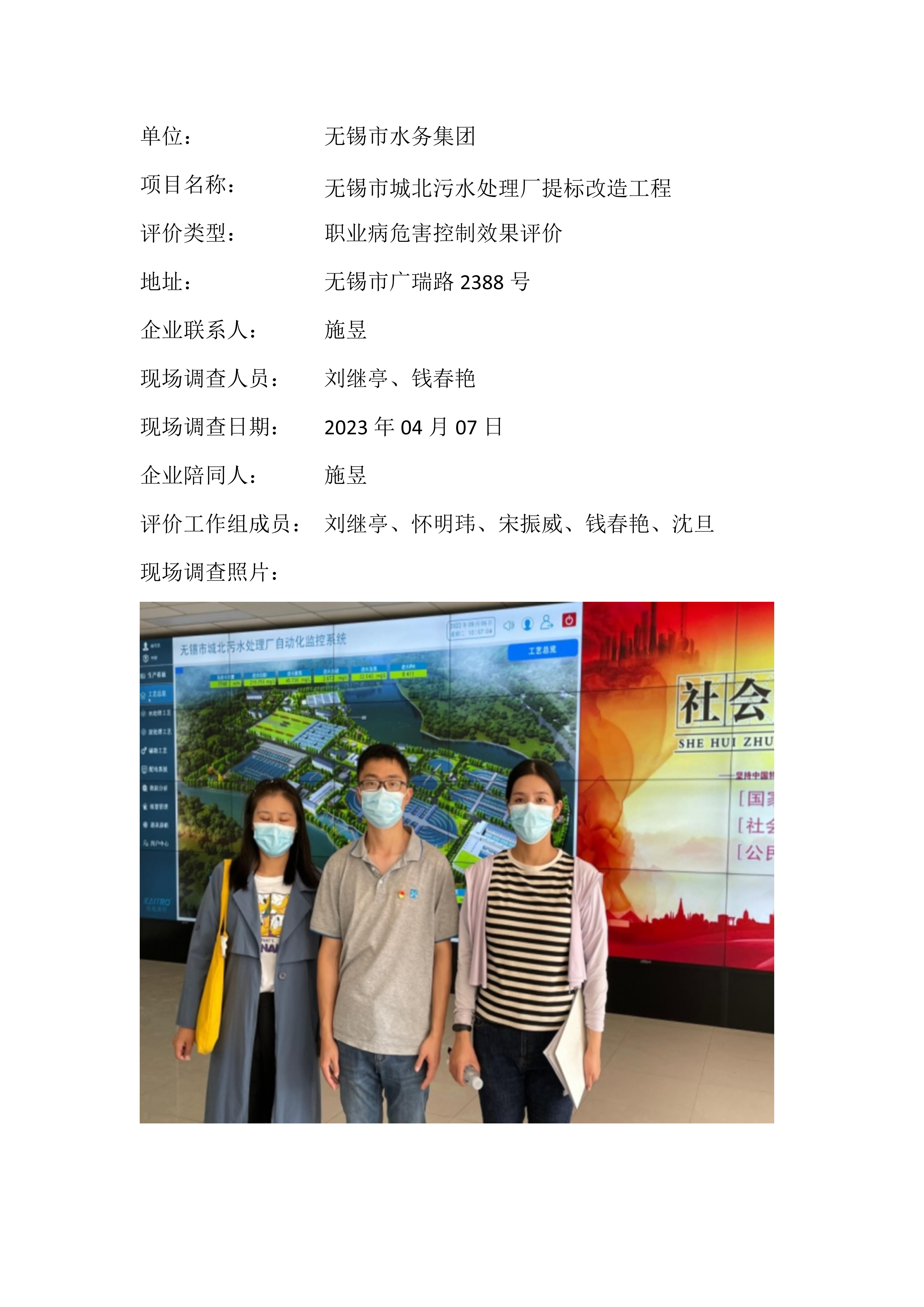 【职业病危害控制效果评价报告】无锡市水务集团