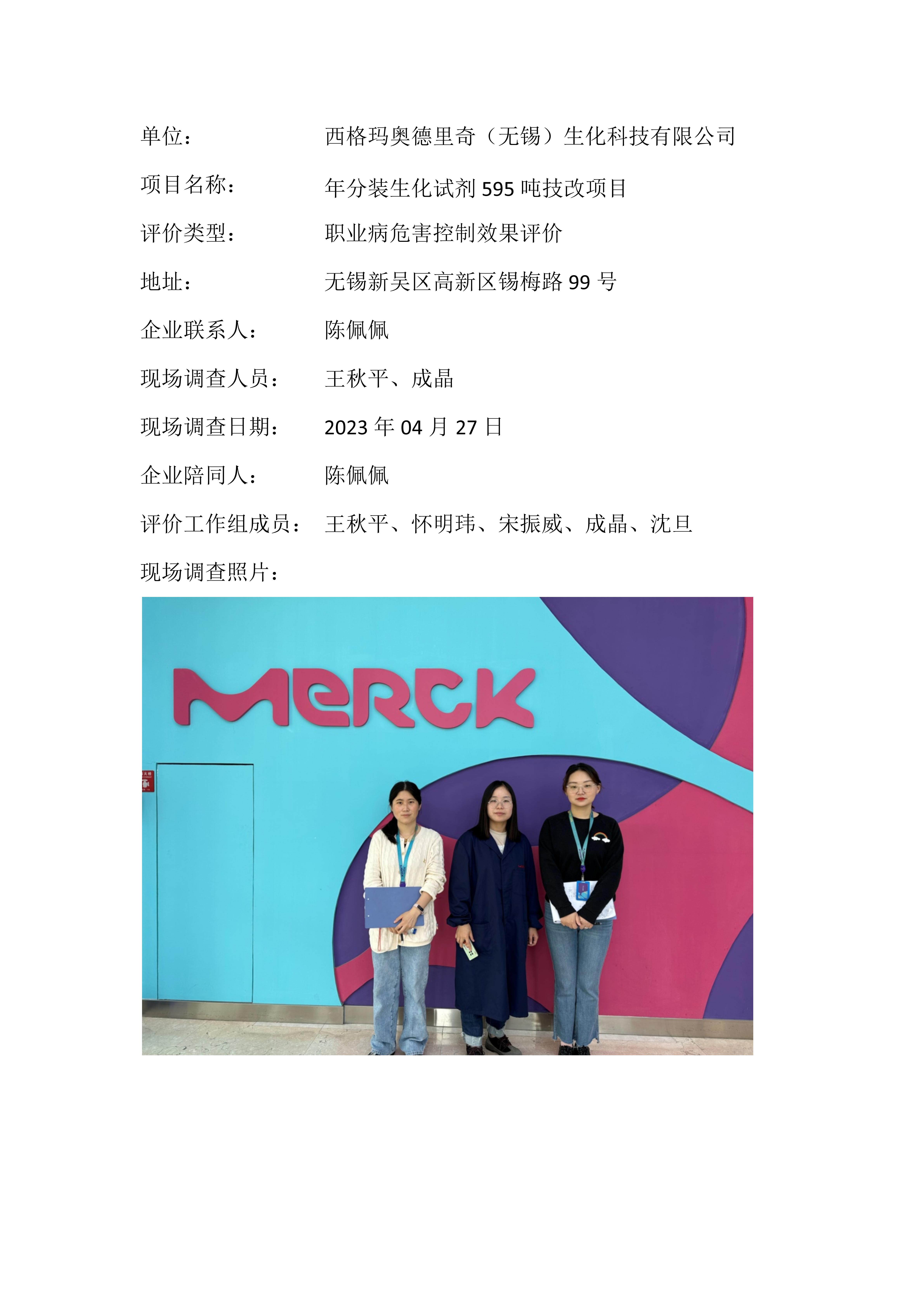 【职业病危害控制效果评价报告】西格玛奥德里奇(无锡)生化科技有限公司