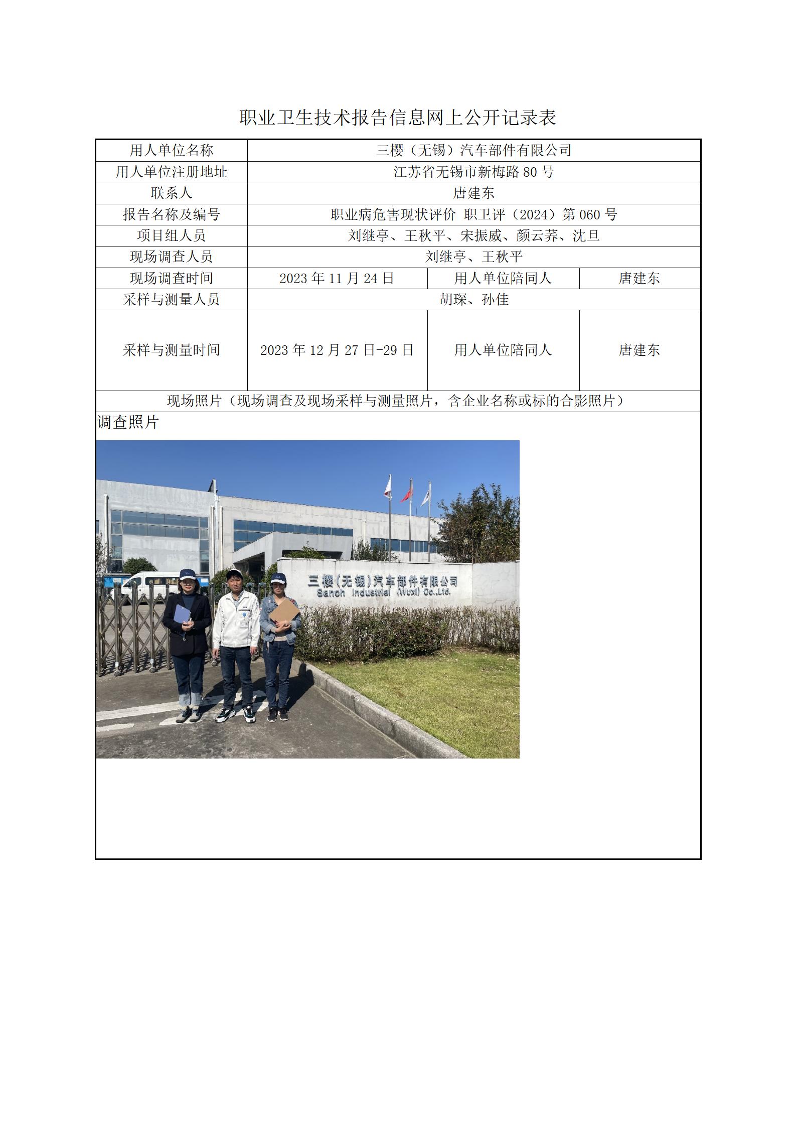 【职业病危害现状评价报告】三樱(无锡)汽车部件有限公司