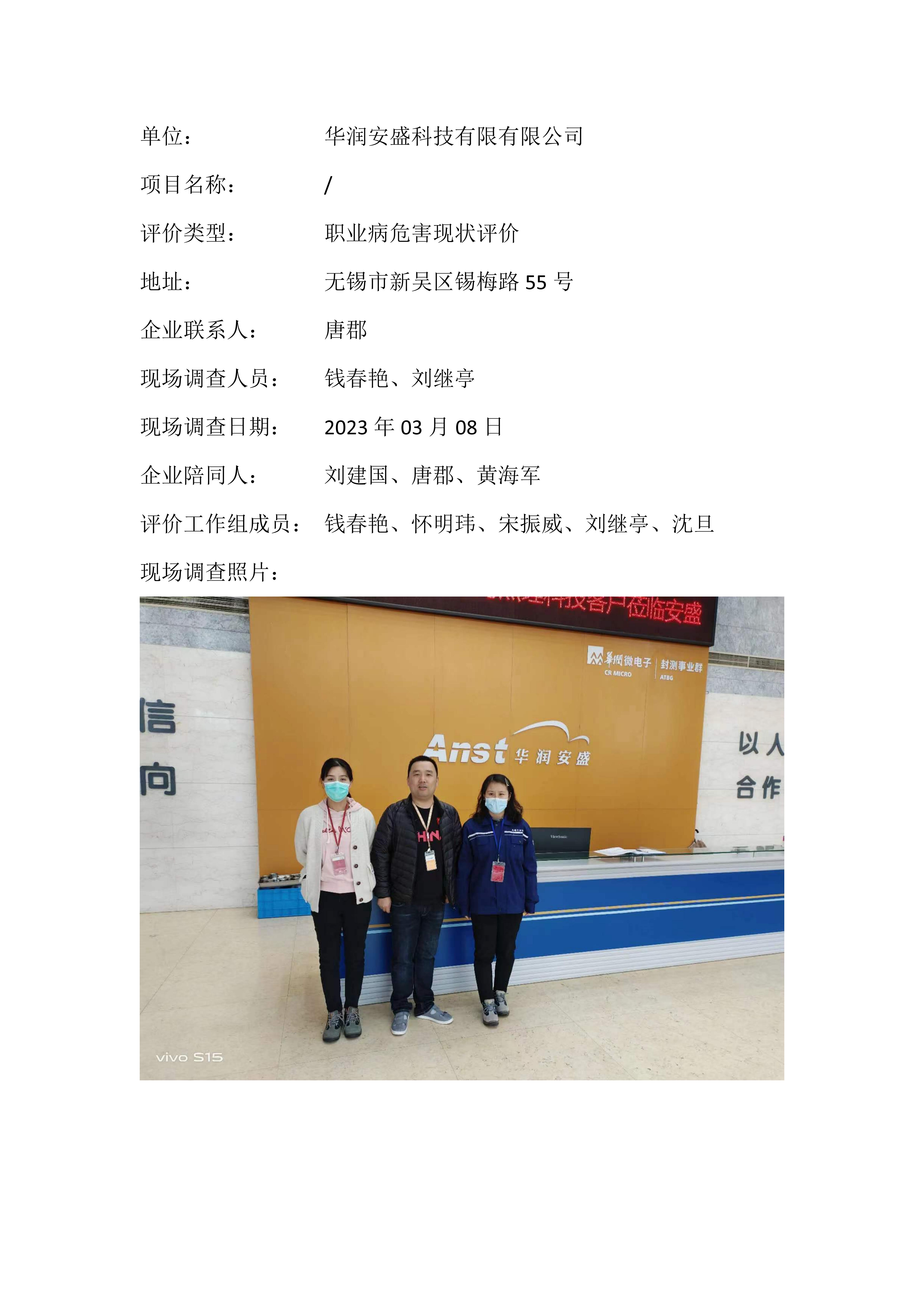 【职业病危害现状评价报告】无锡华润安盛科技有限公司