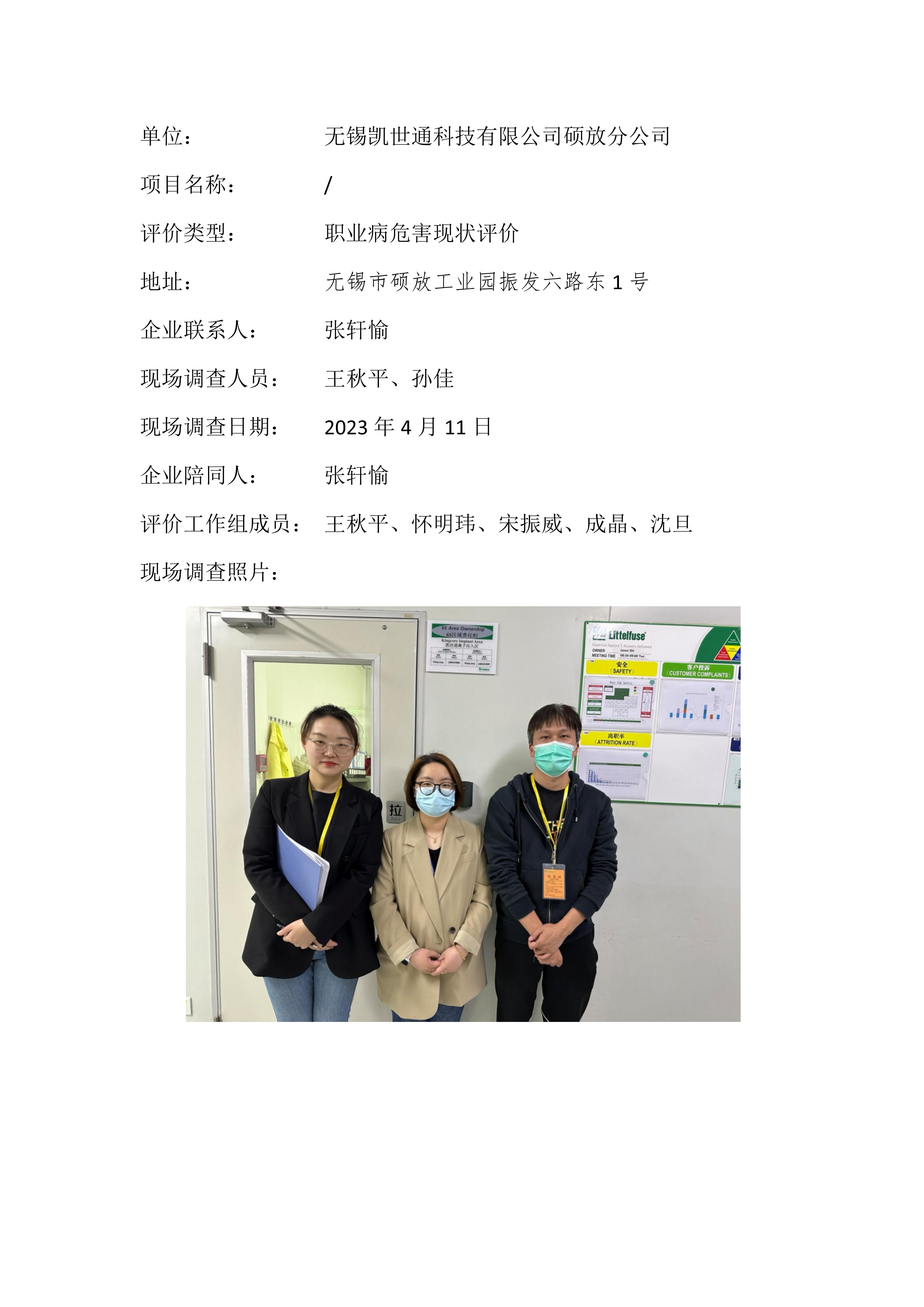 【职业病危害现状评价报告】无锡凯世通科技有限公司