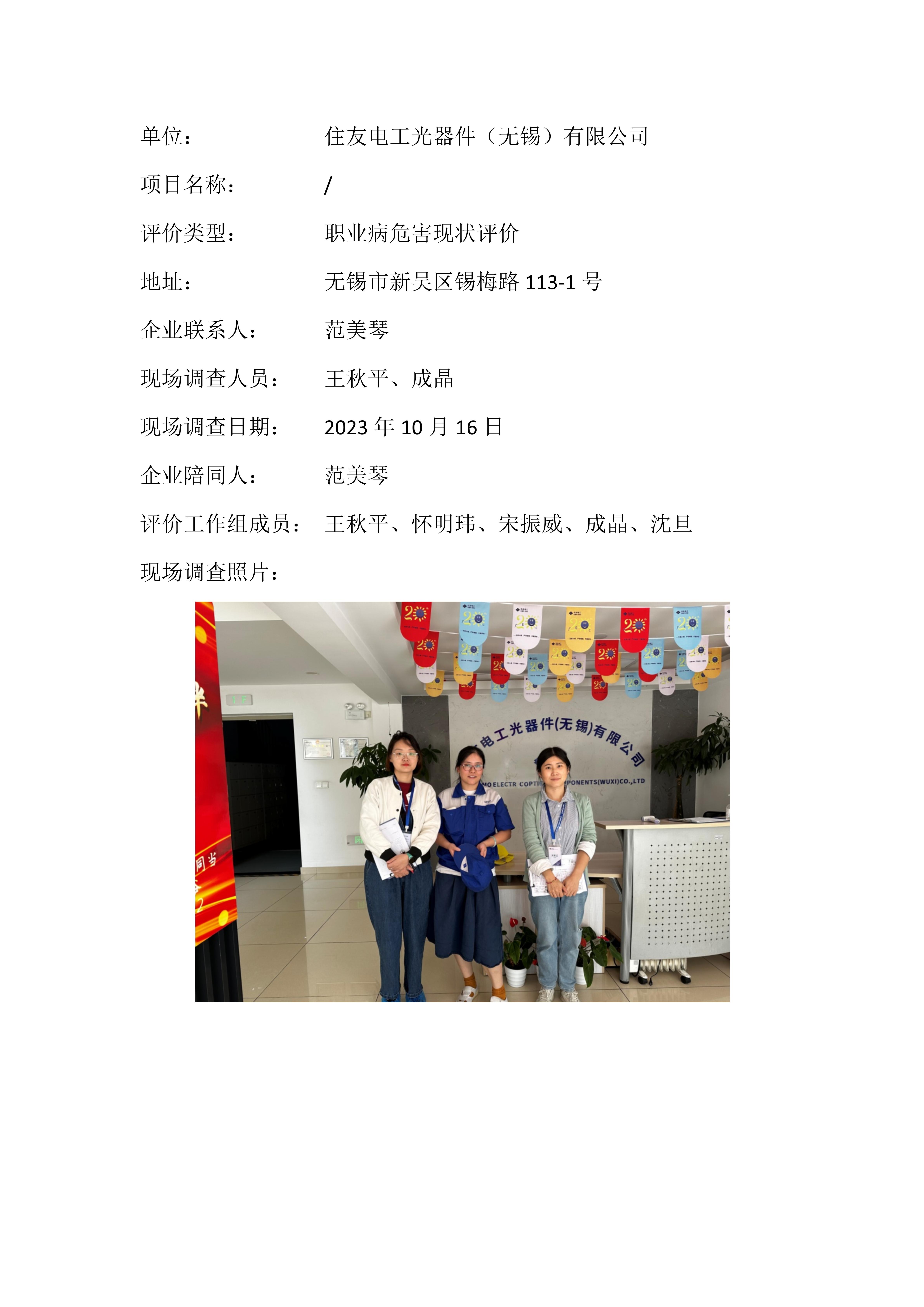 【职业病危害现状评价报告】住友电工光器件(无锡)有限公司