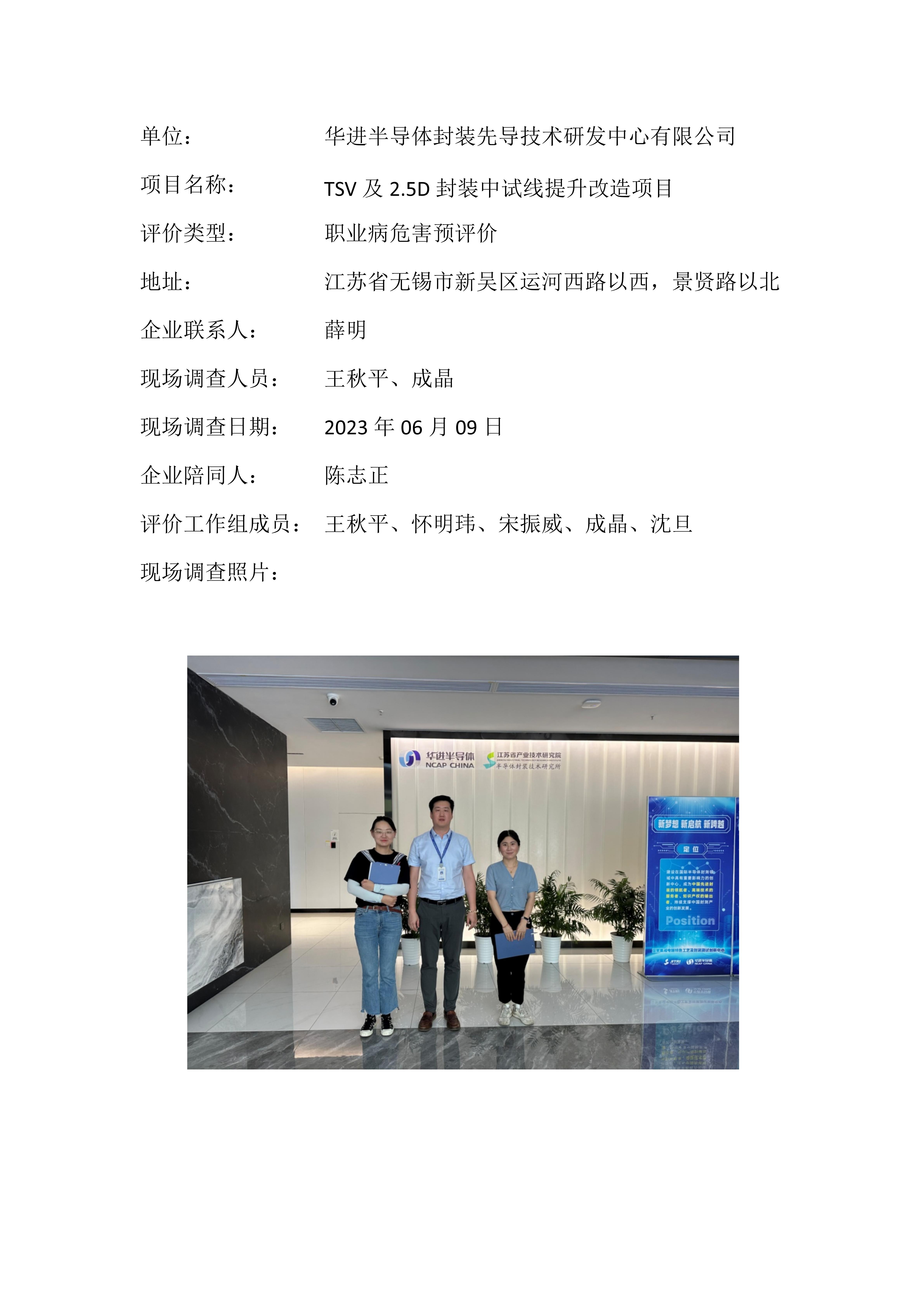【职业病危害预评价报告】华进半导体封装先导技术研发中心有限公司