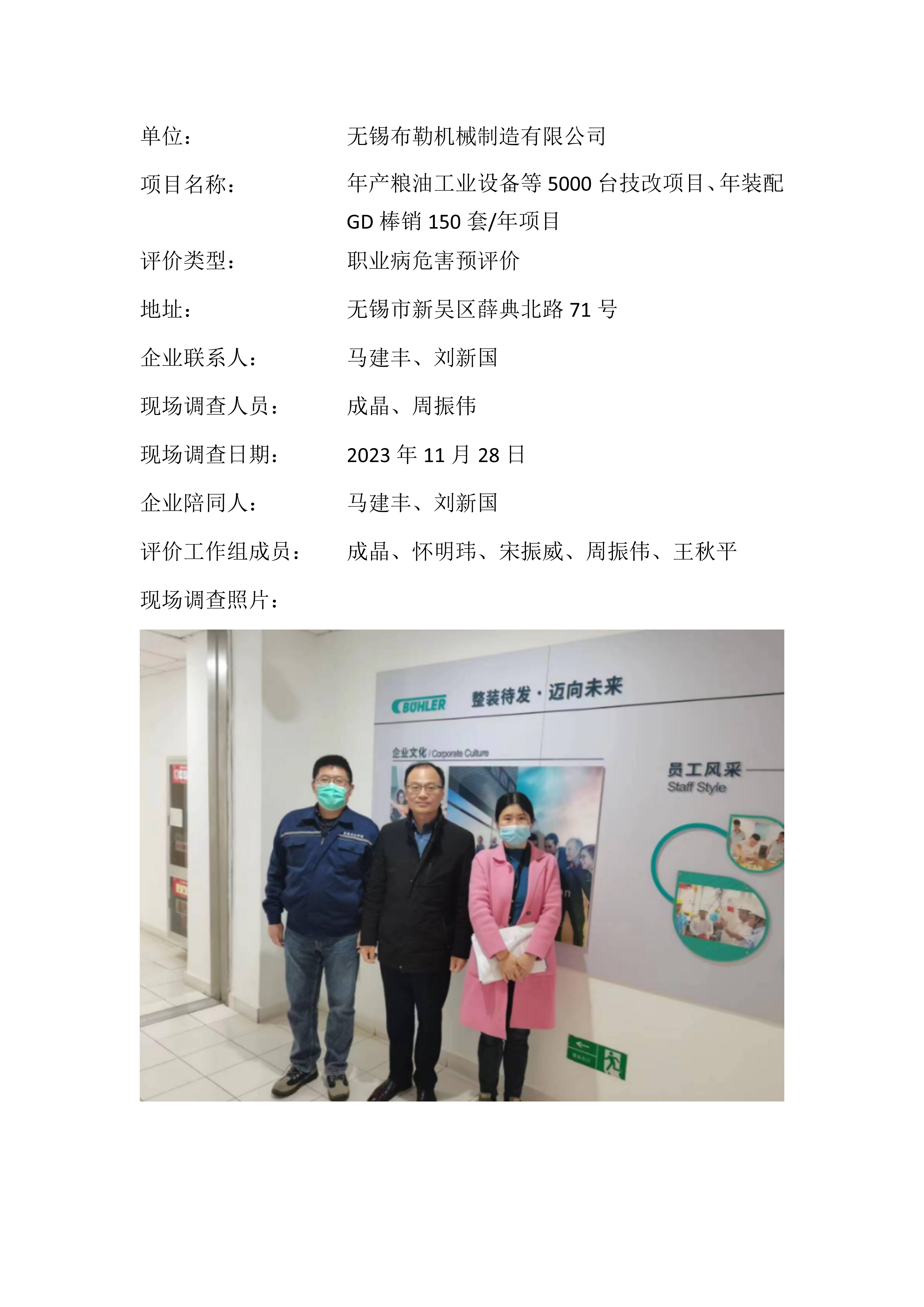 【职业病危害预评价报告】无锡布勒机械有限公司