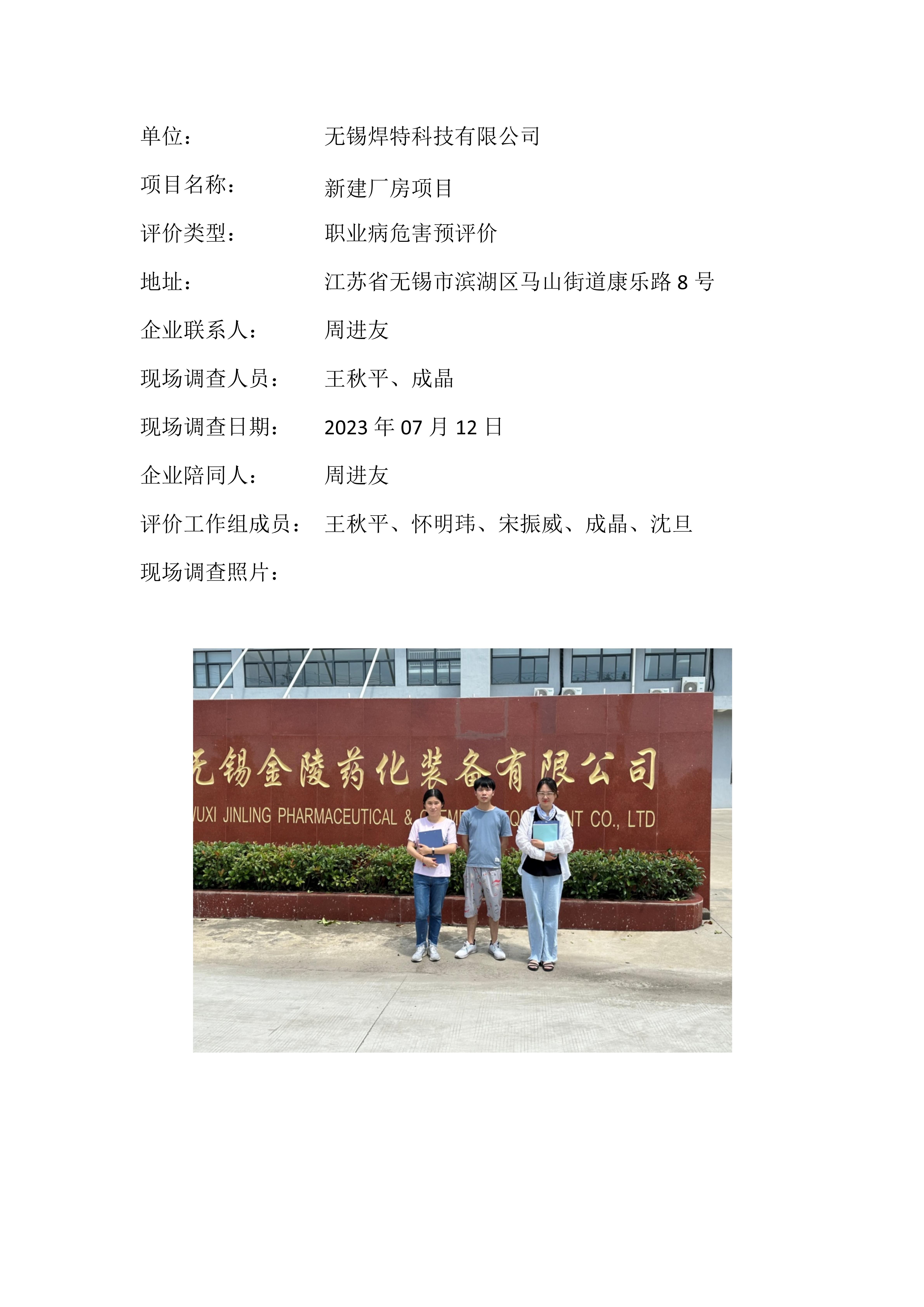 【职业病危害预评价报告】无锡焊特科技有限公司