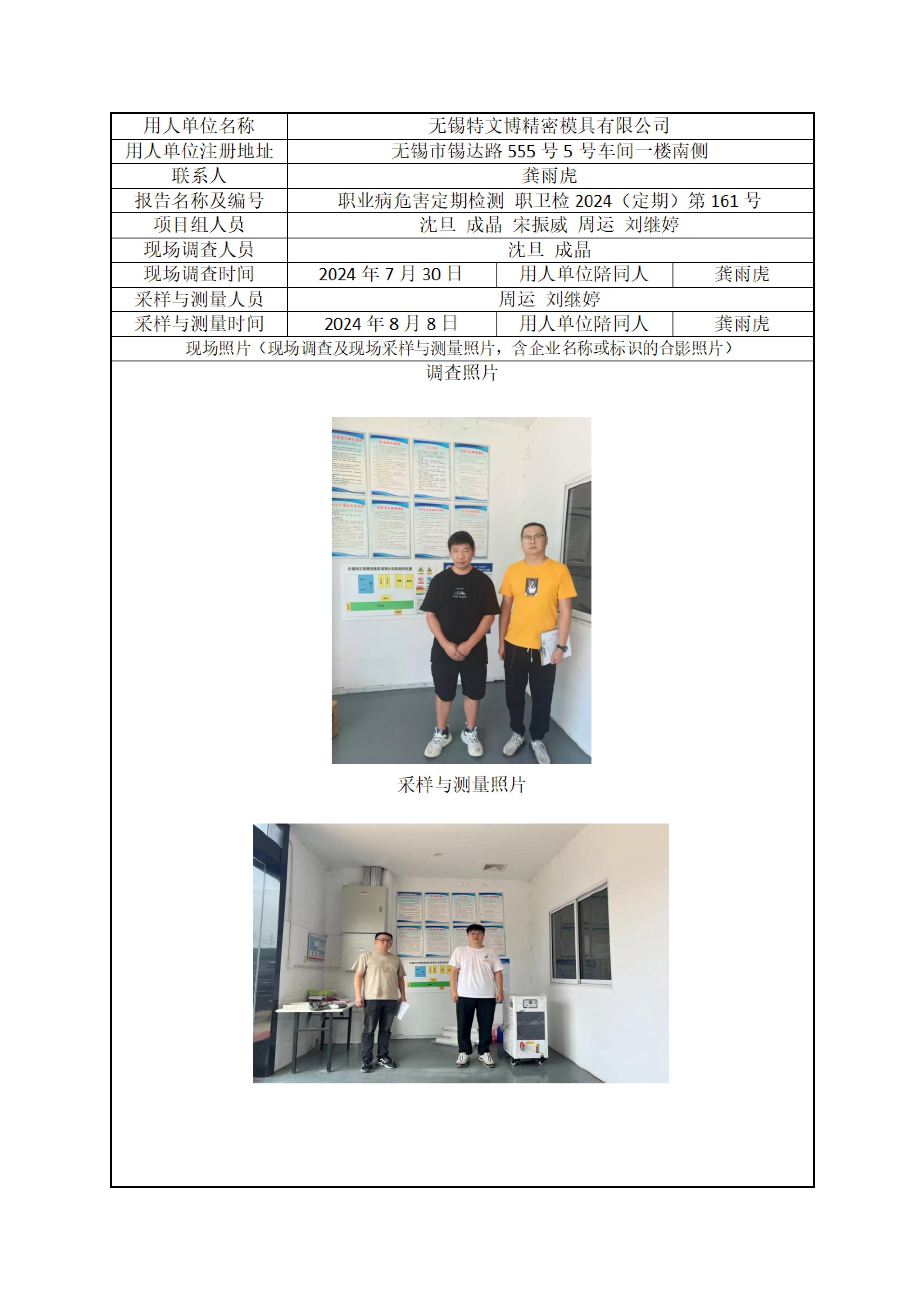 【职业卫生报告】无锡特文博精密模具有限公司