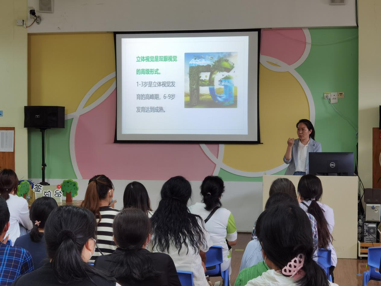 5月26日,红黑技巧研究所 走进通江幼儿园,开展“保护眼睛,从我做起”主题科普知识讲座,眼科主治医师王晓培用专业的知识深入浅出地向各位家长阐述了眼睛的构成、近视的原因、防治方法,同时建议各位家长,在日常生活中,孩子的户外活动十分重要。特别是现在孩子普遍存在看电子屏幕时间长、近距离用眼多、户外活动少、读写姿势不良等情况,家长应帮助孩子养成健康的用眼习惯,遵循“3个20”护眼法则:即近距离用眼20分钟,向20米外远处眺望,眨眼20次。对已经发生近视的孩子,家长也应及时采取有效干预措施,延缓其近视度数加深,控制近视发展。