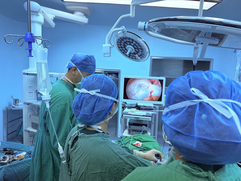 在麻醉科团队的精准护航下,妇产科袁玲主任与泌尿外科何晓亮主任同台操刀,手术正式开始。