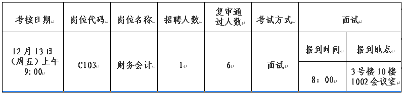 考核总分为100分,综合得分60分为合格线。根据成绩从高到低按招聘岗位数1:1确定拟录用人员。面试成绩为最终成绩。